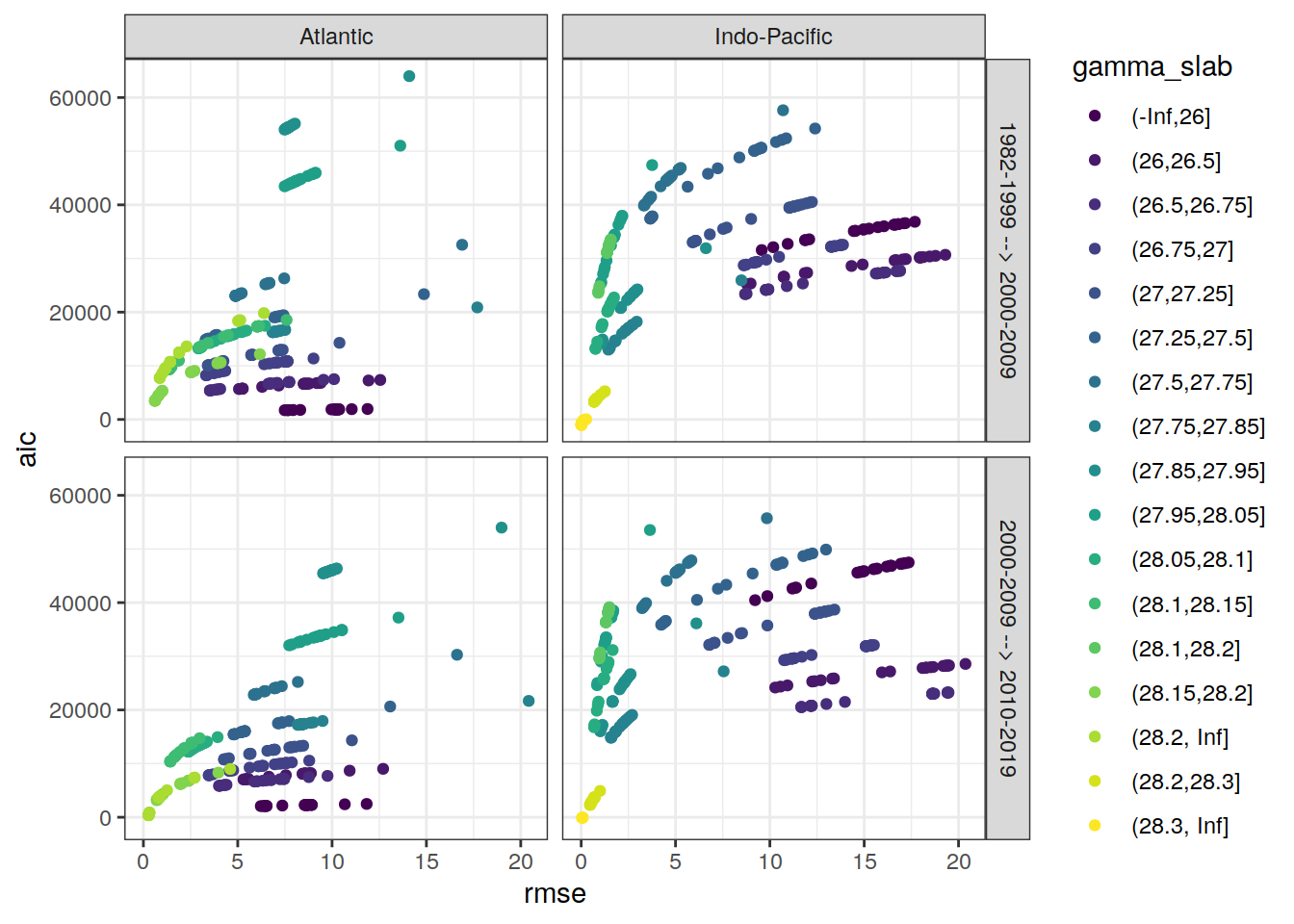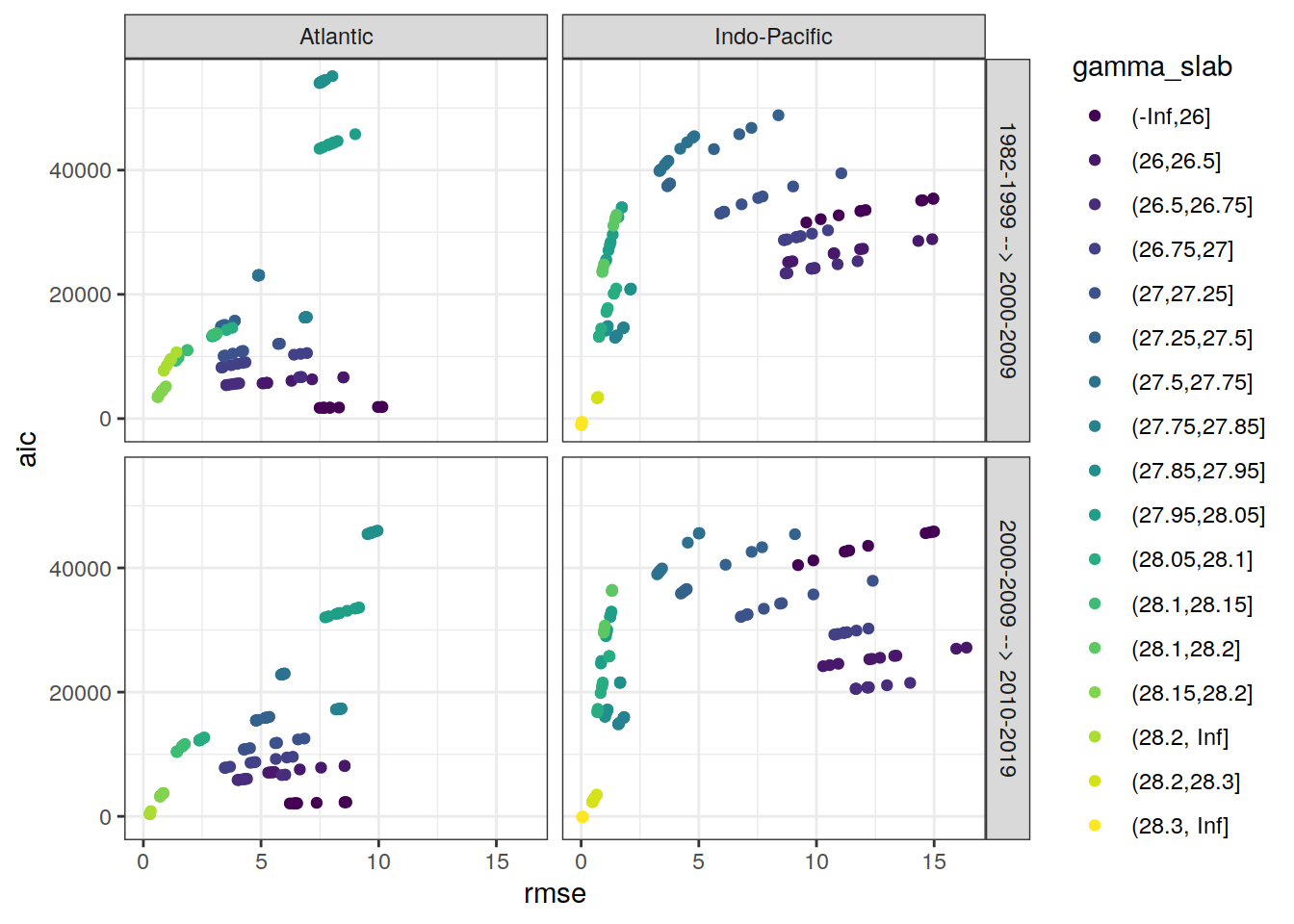 ggplot(aes(rmse, aic, col = gamma_slab)) +