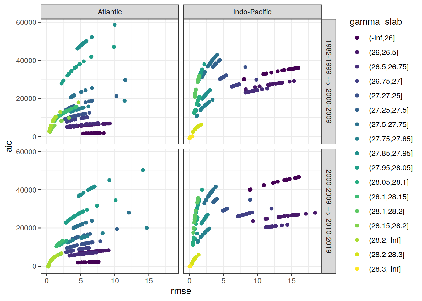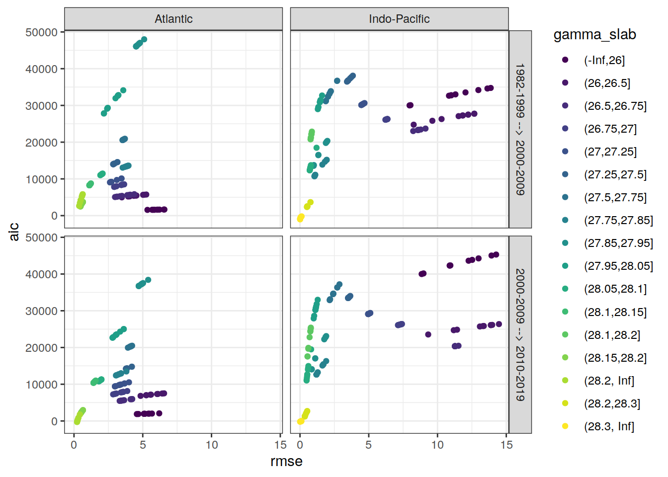 ggplot(aes(rmse, aic, col = gamma_slab)) +