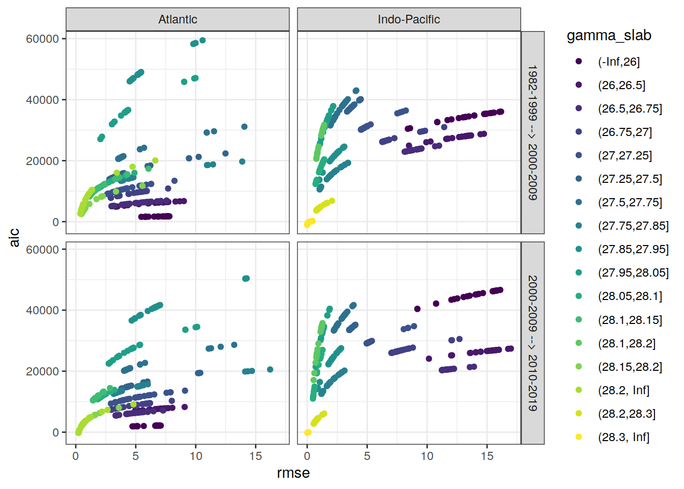ggplot(aes(rmse, aic, col = gamma_slab)) +