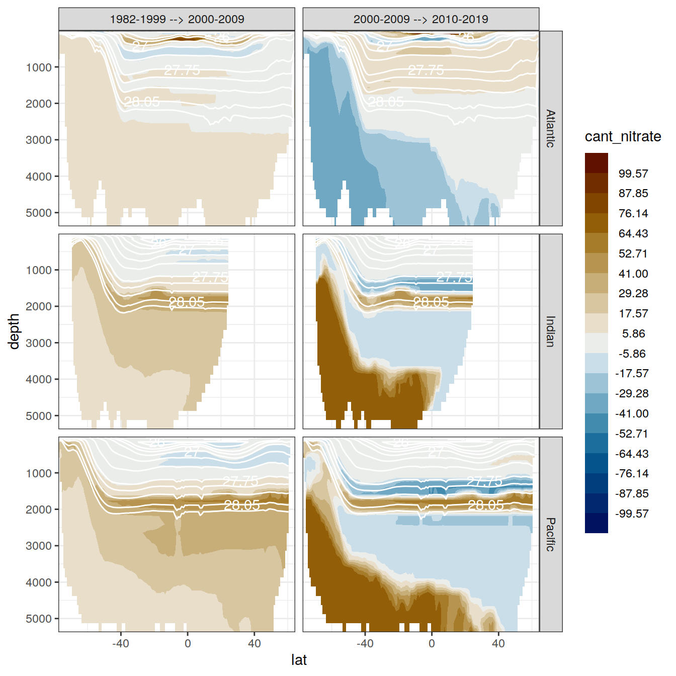 geom_contour(aes(lat, depth, z = gamma_mean),