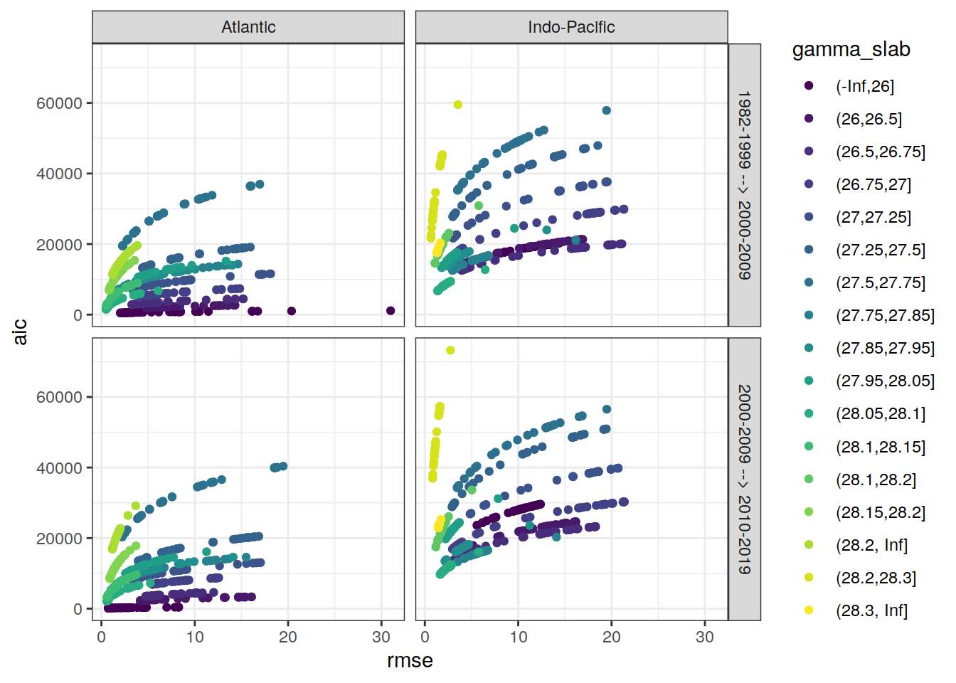 ggplot(aes(rmse, aic, col = gamma_slab)) +