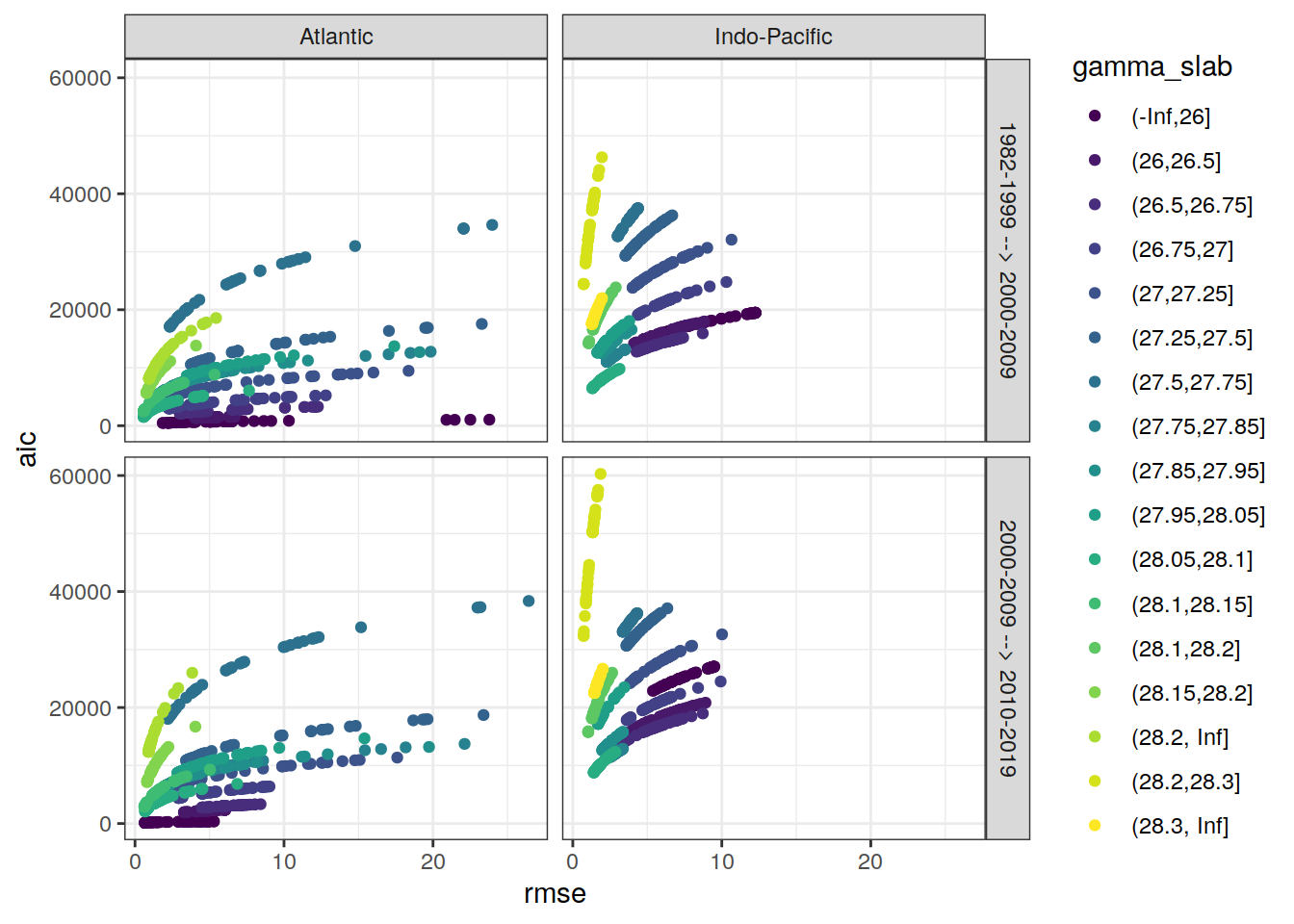 ggplot(aes(rmse, aic, col = gamma_slab)) +