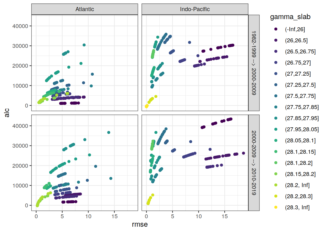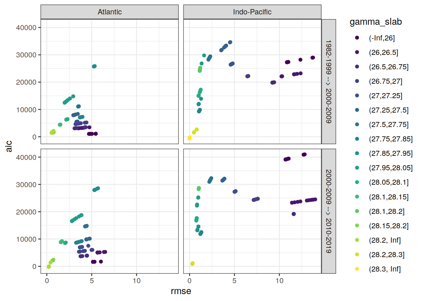 ggplot(aes(rmse, aic, col = gamma_slab)) +