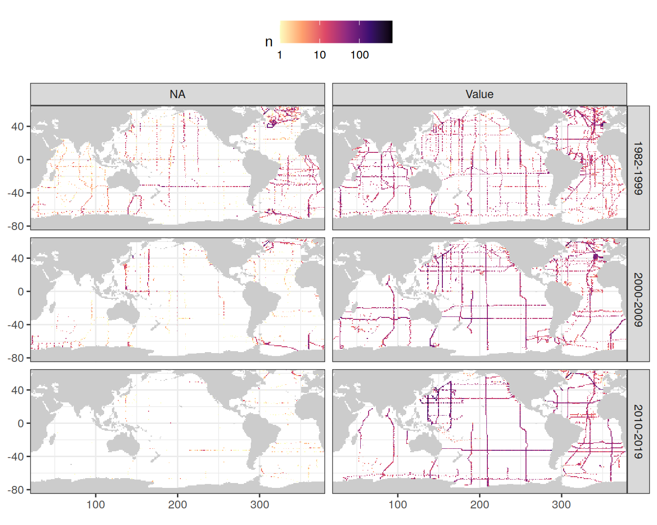 # geom_raster(data = GLODAP_tco2_grid, aes(lon, lat), fill = "grey80") +