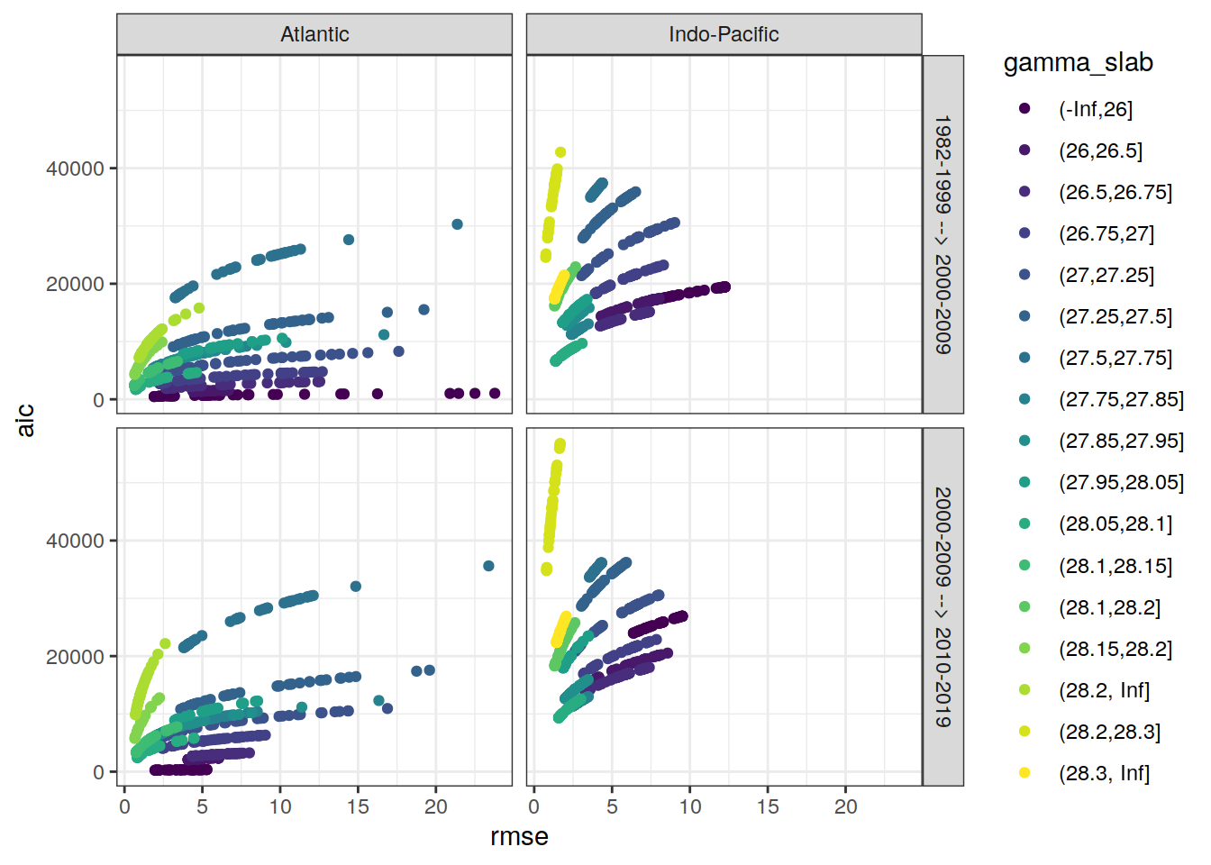ggplot(aes(rmse, aic, col = gamma_slab)) +
