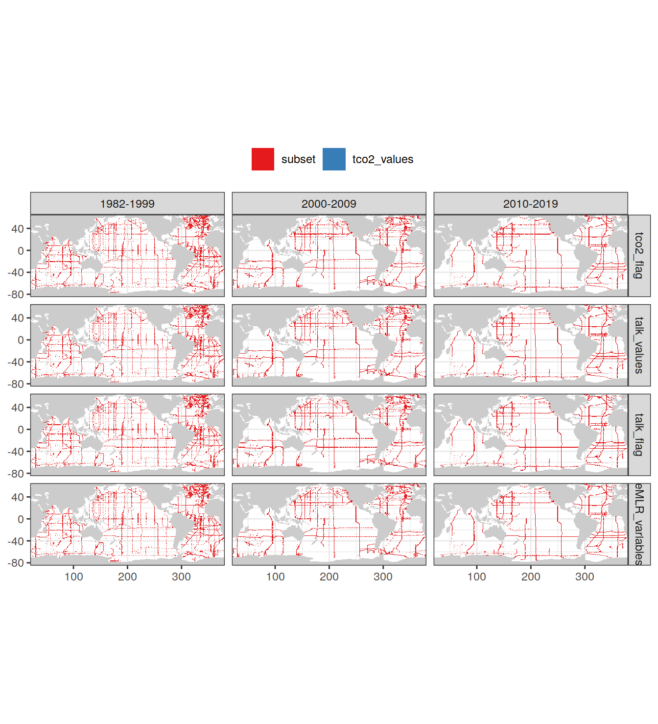 # geom_raster(data = GLODAP_tco2_grid, aes(lon, lat), fill = "grey80") +
