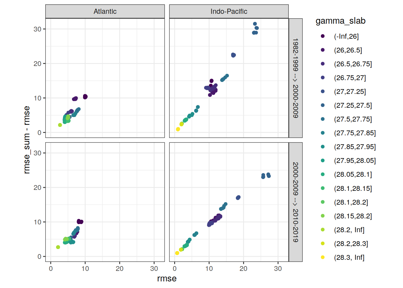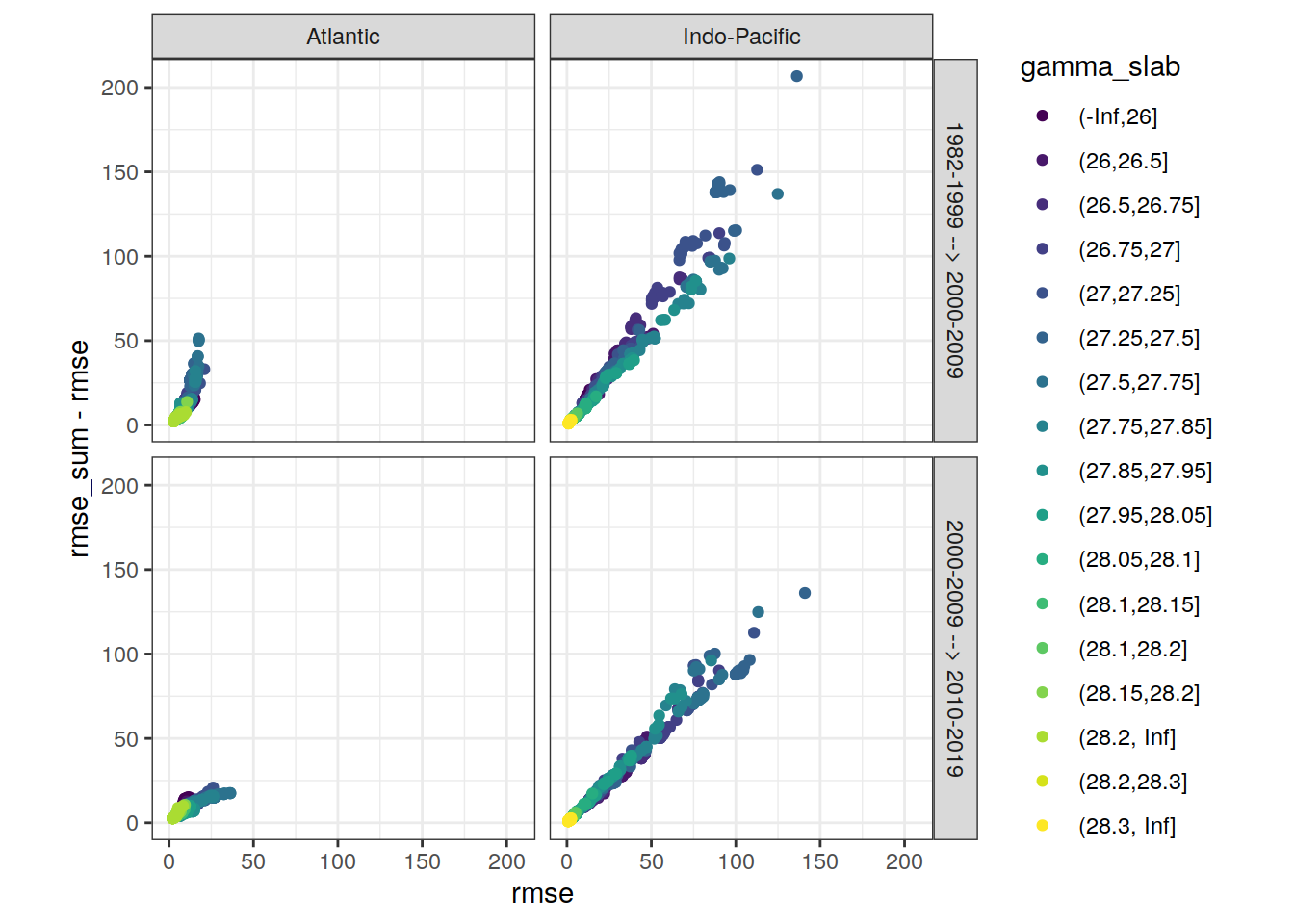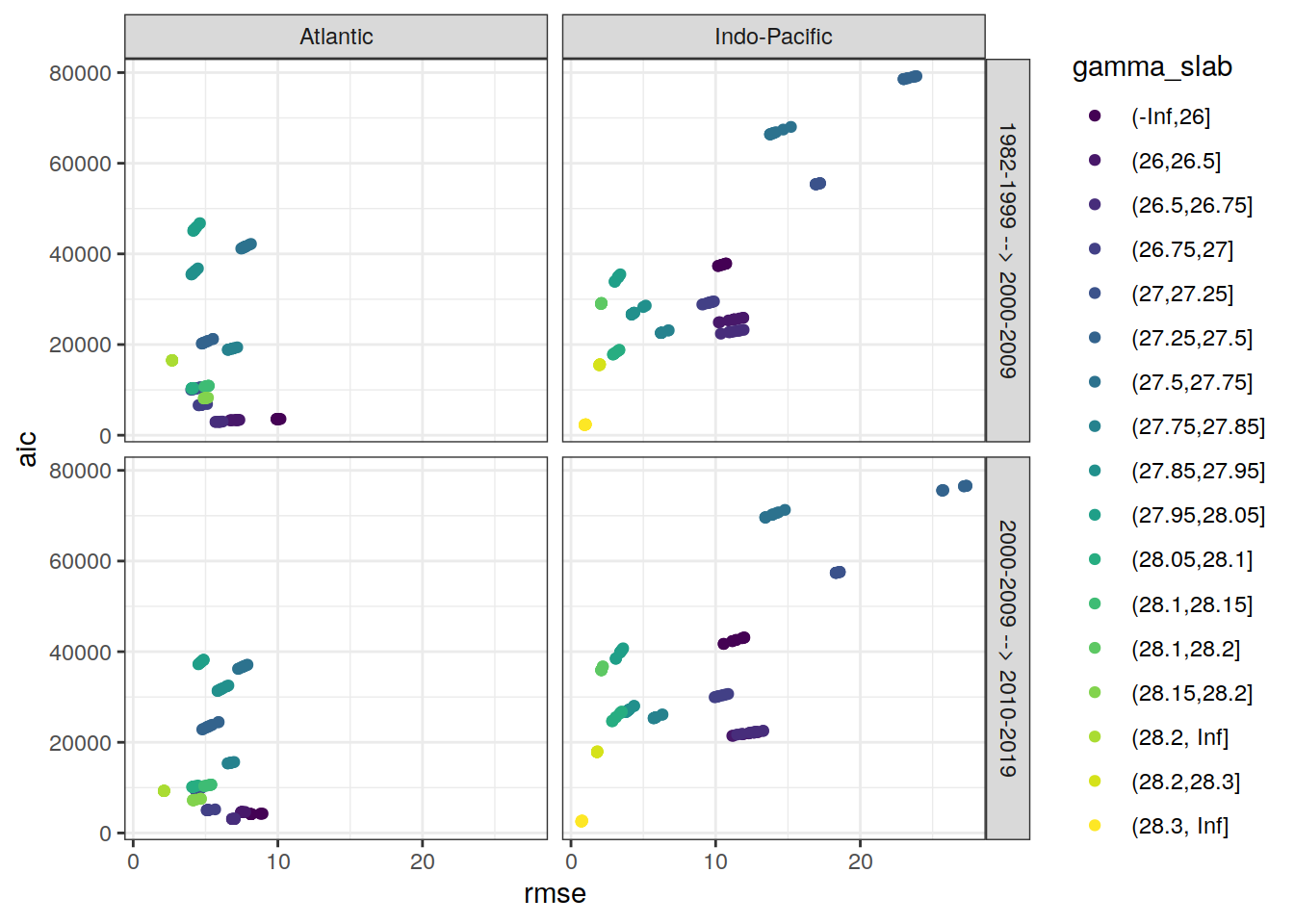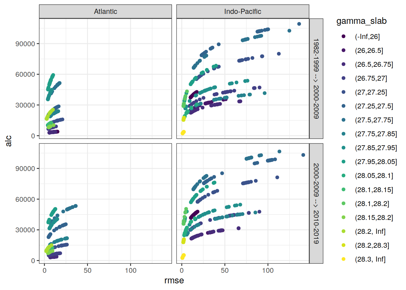 ggplot(aes(rmse, aic, col = gamma_slab)) +