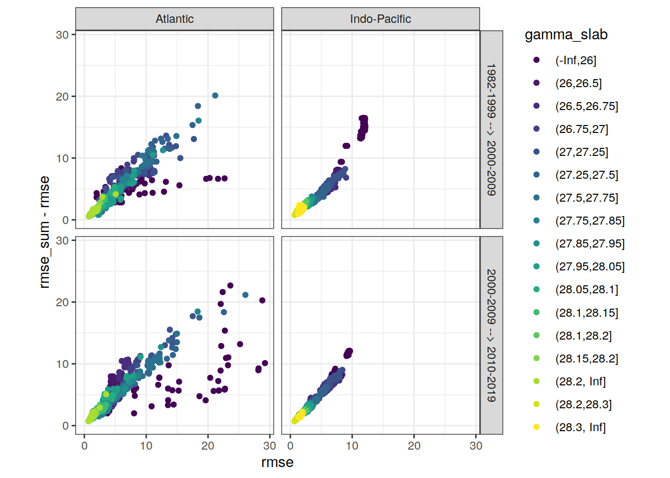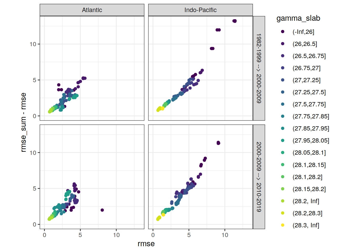 ggplot(aes(rmse, aic, col = gamma_slab)) +
