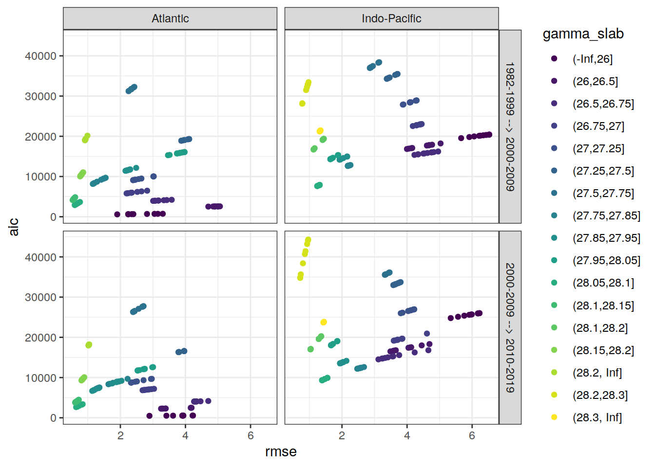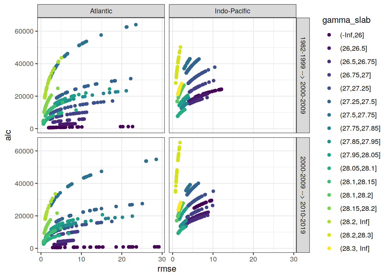 ggplot(aes(rmse, aic, col = gamma_slab)) +