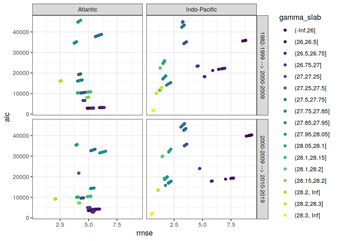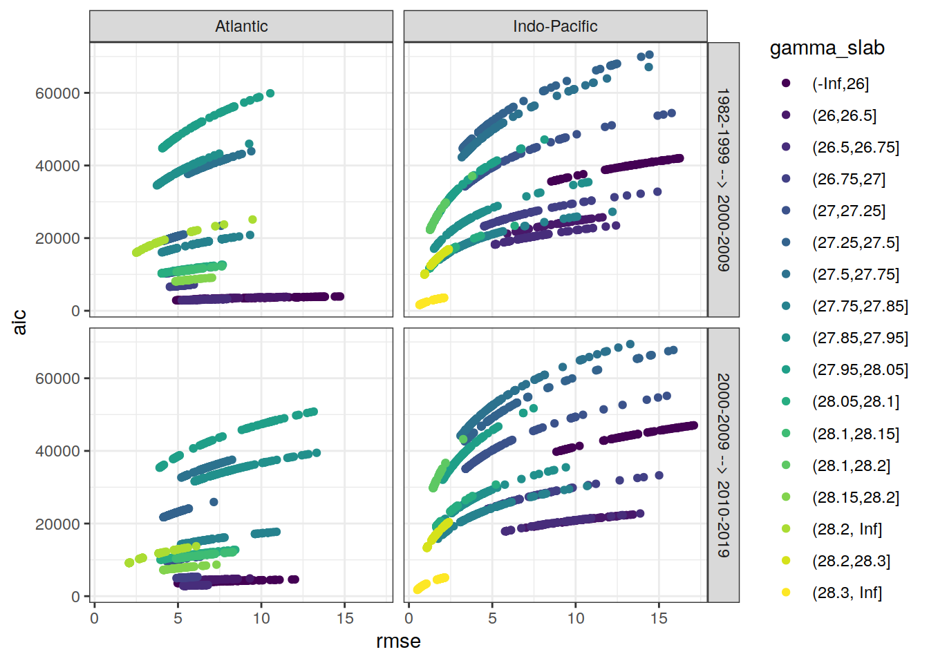 ggplot(aes(rmse, aic, col = gamma_slab)) +