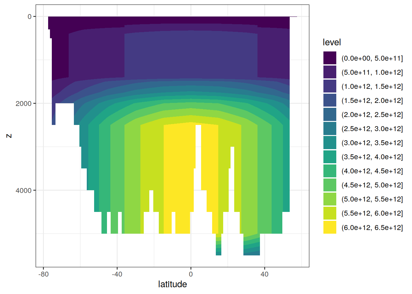 ggplot(aes(latitude, z, z=volume)) +