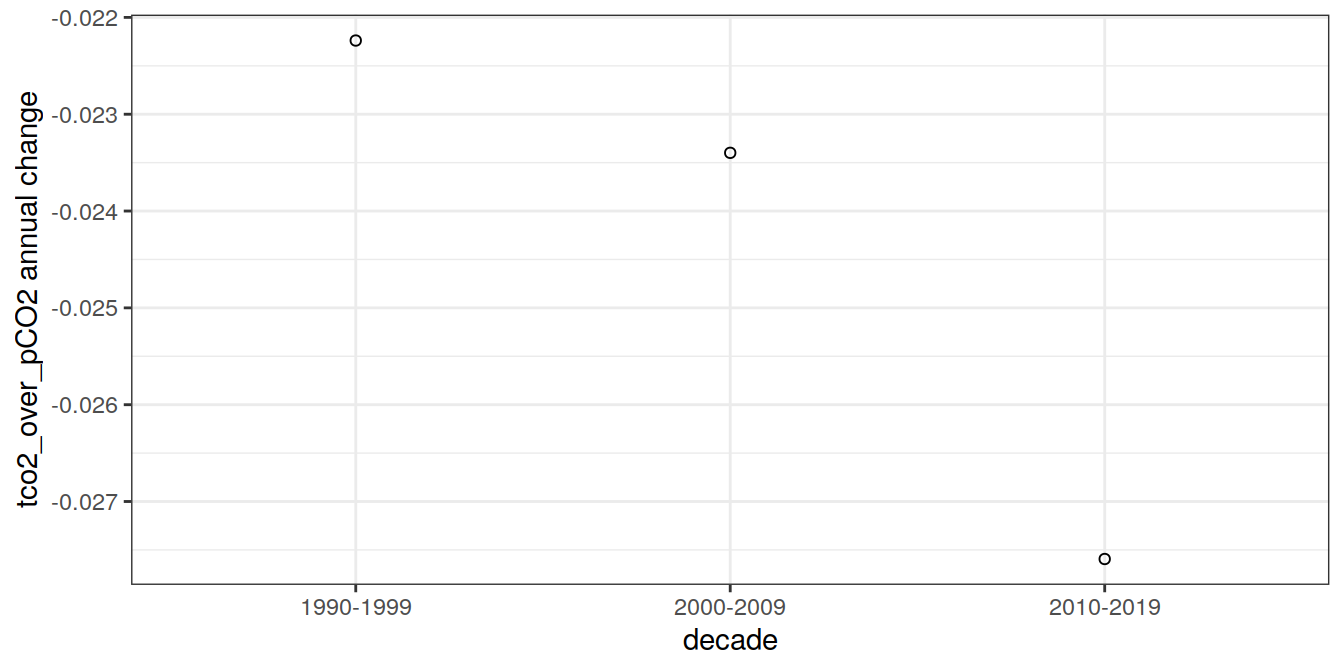 ggplot(aes(decade, delta_pCO2_hist)) +