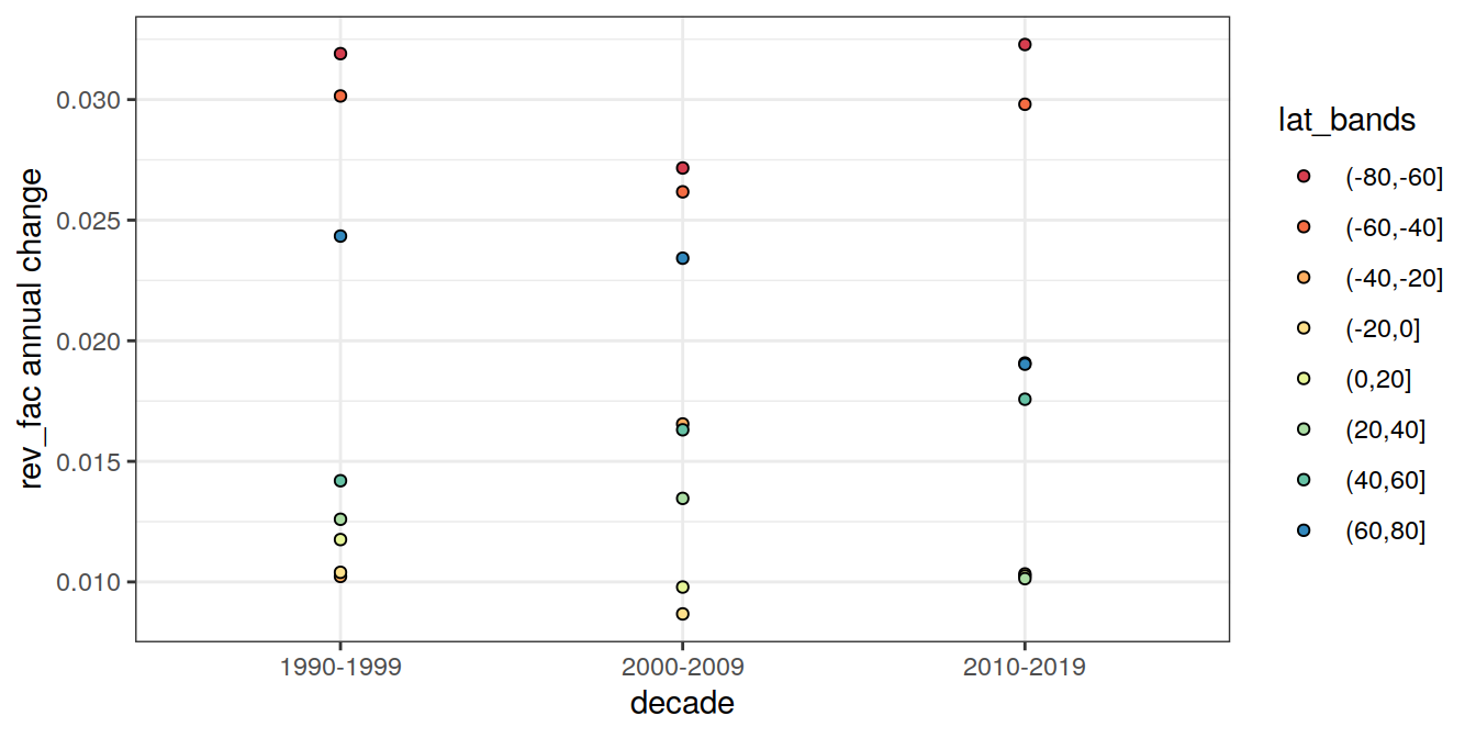 filter(year == 2010), aes(lon, lat, fill = lat_bands)) +
