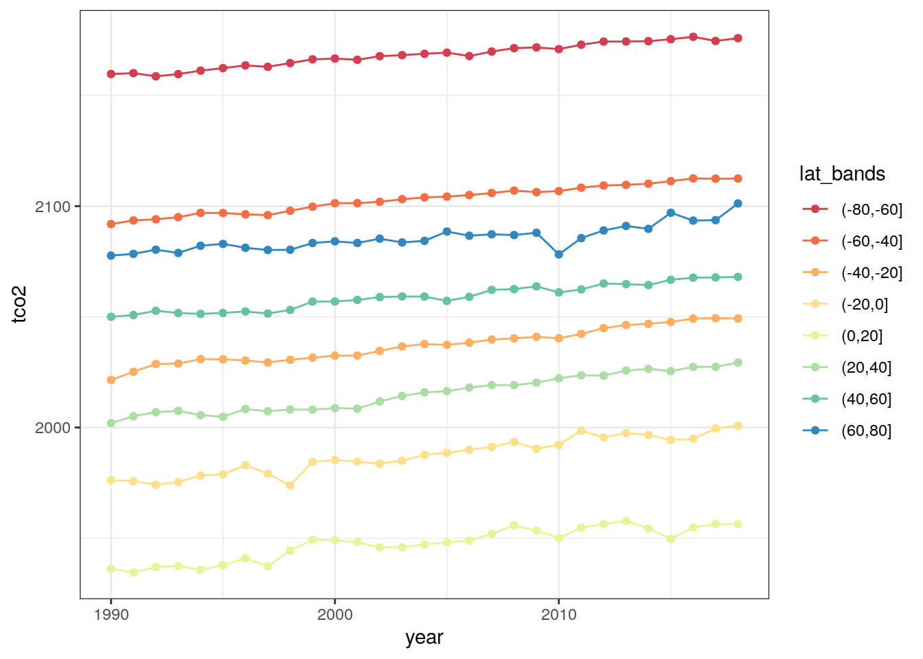 # ggplot(aes(lon, lat, fill = pCO2atm)) +