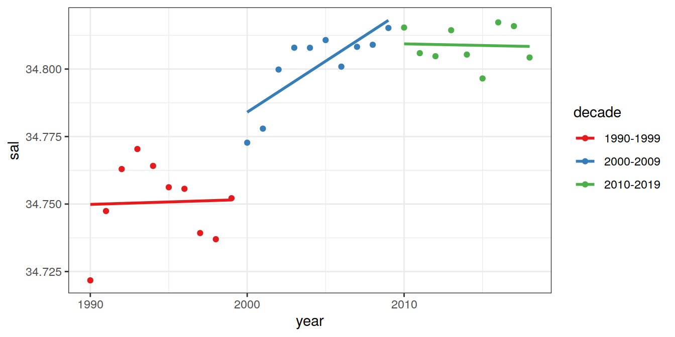 # fit decadel linear trends globally