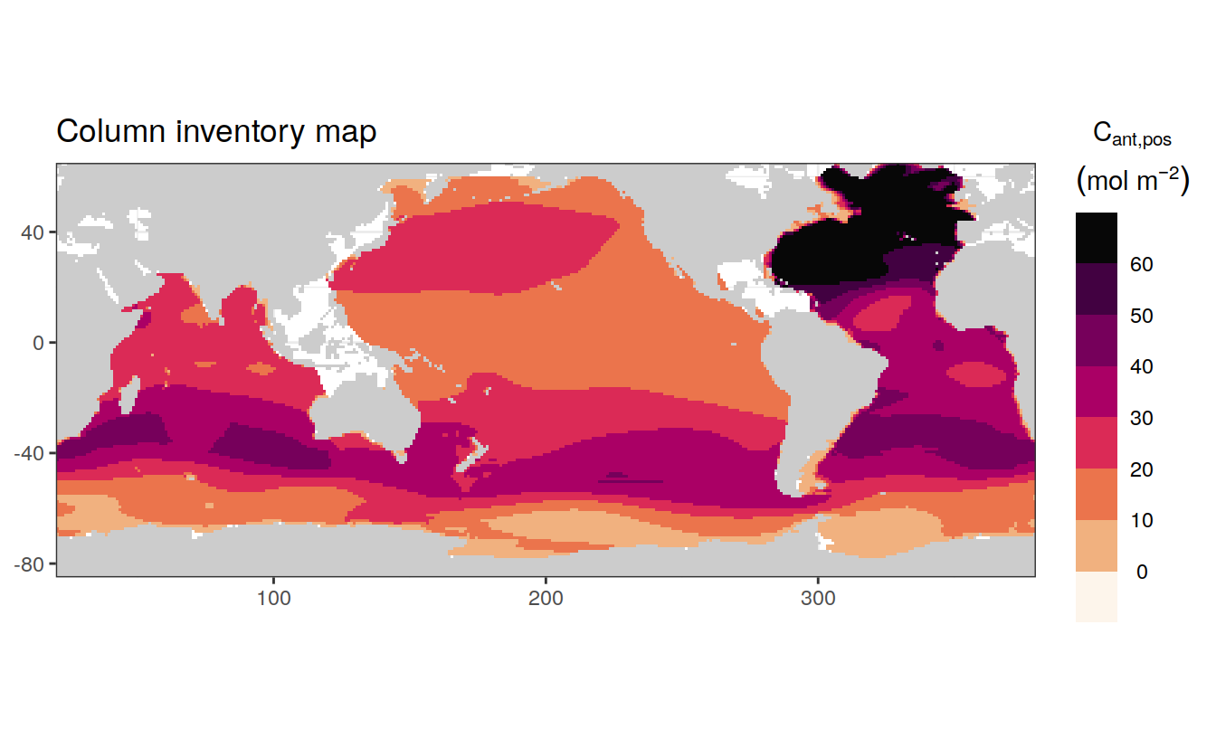 Global Cant inventories were estimated in Pg-C. Please note that here we only added positive Cant values in the upper m and do not apply additional corrections for areas not covered.