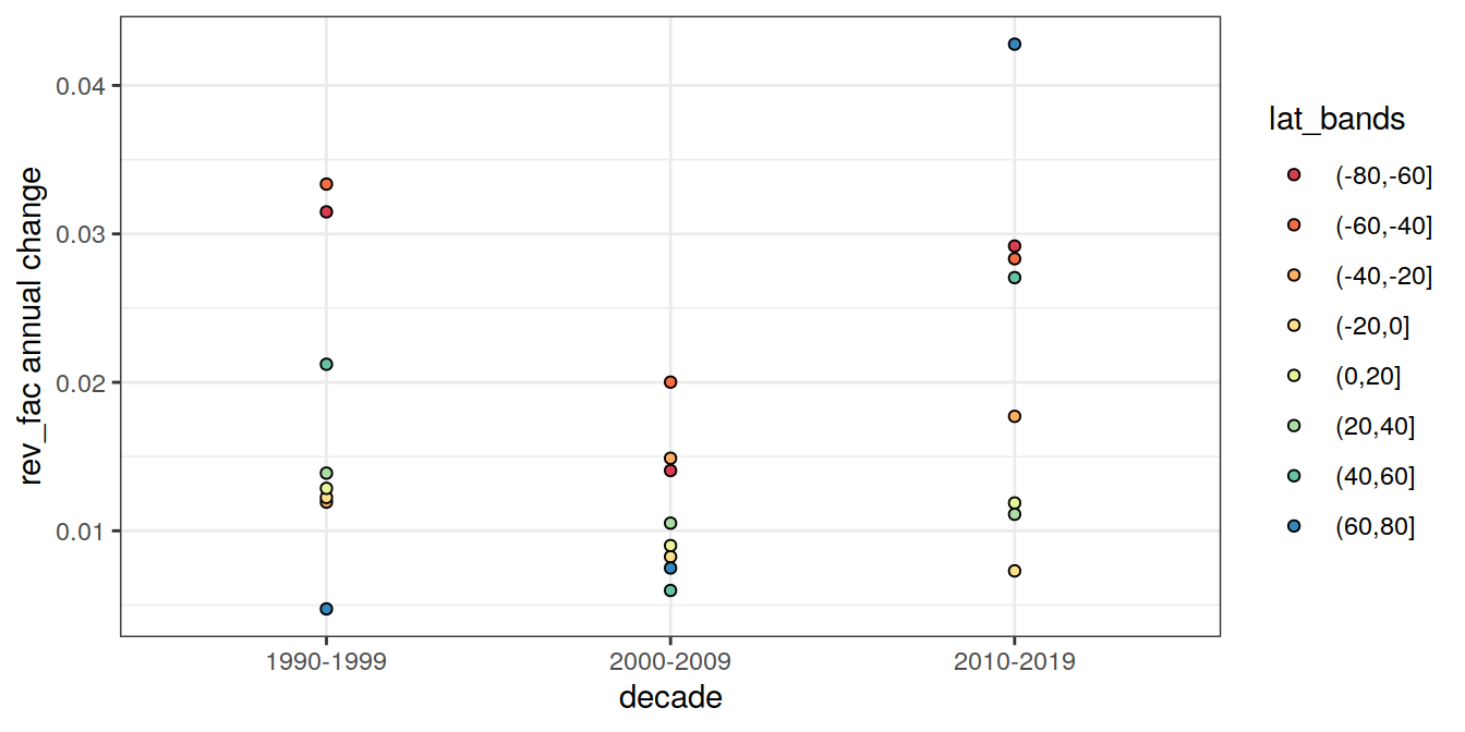 filter(year == 2010), aes(lon, lat, fill = lat_bands)) +