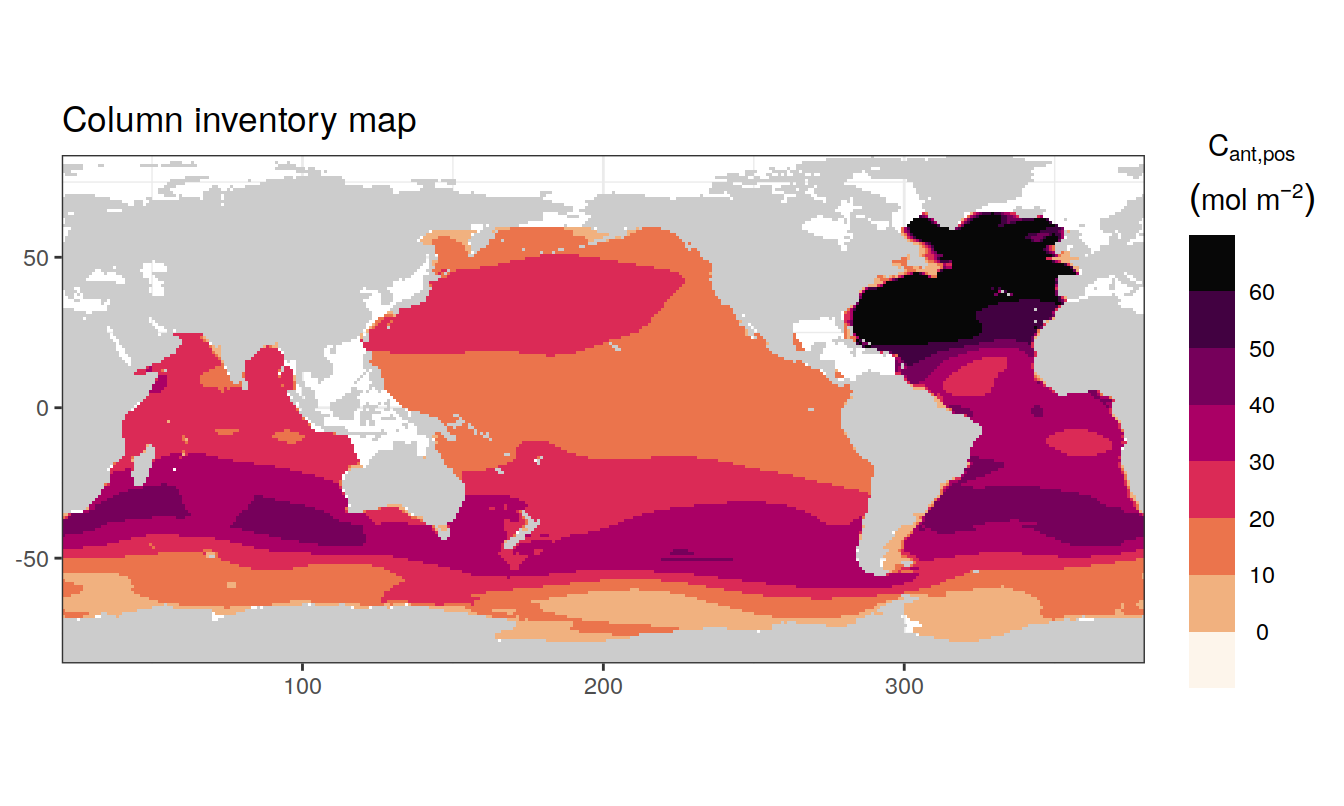Global Cant inventories were estimated in Pg-C. Please note that here we only added positive Cant values in the upper m and do not apply additional corrections for areas not covered.