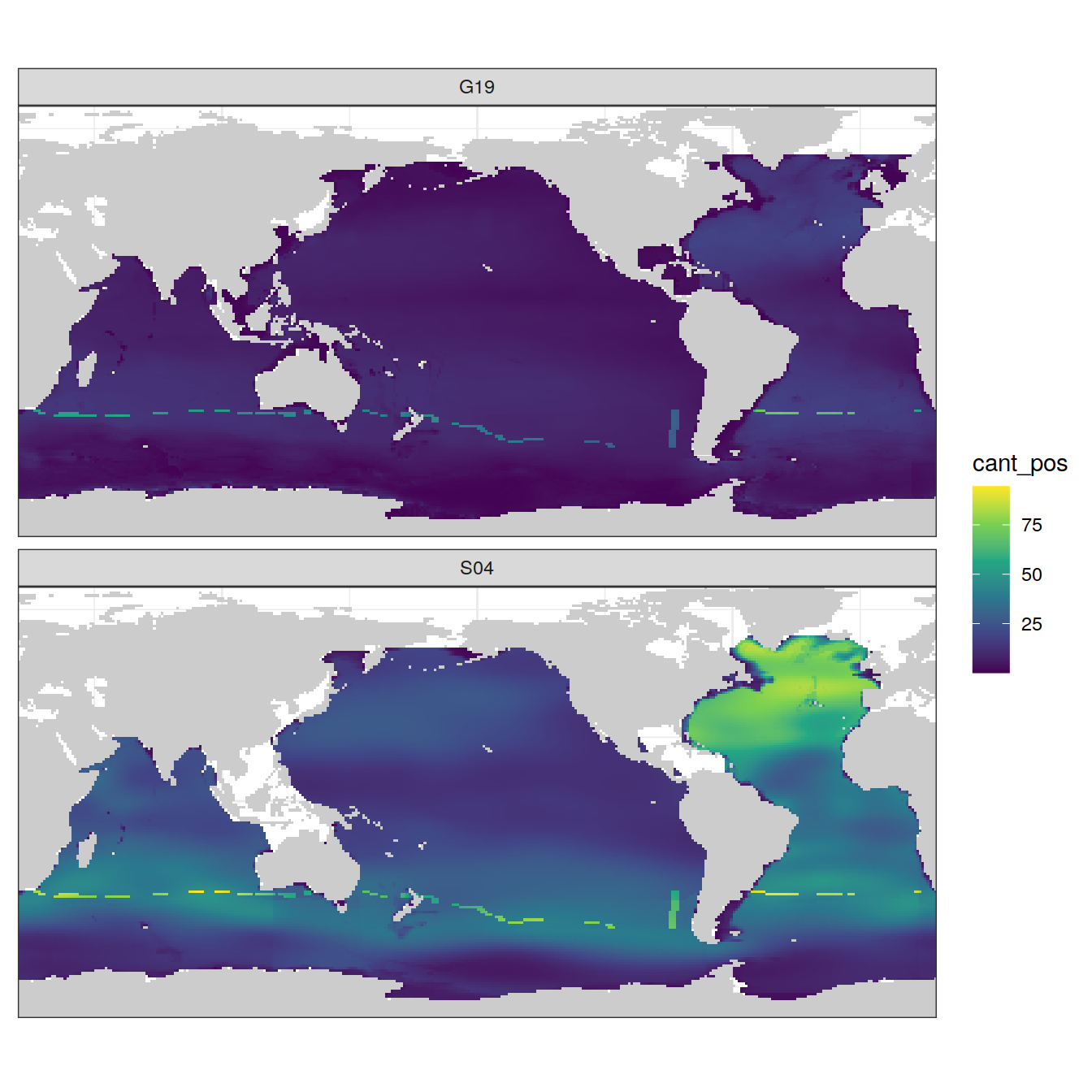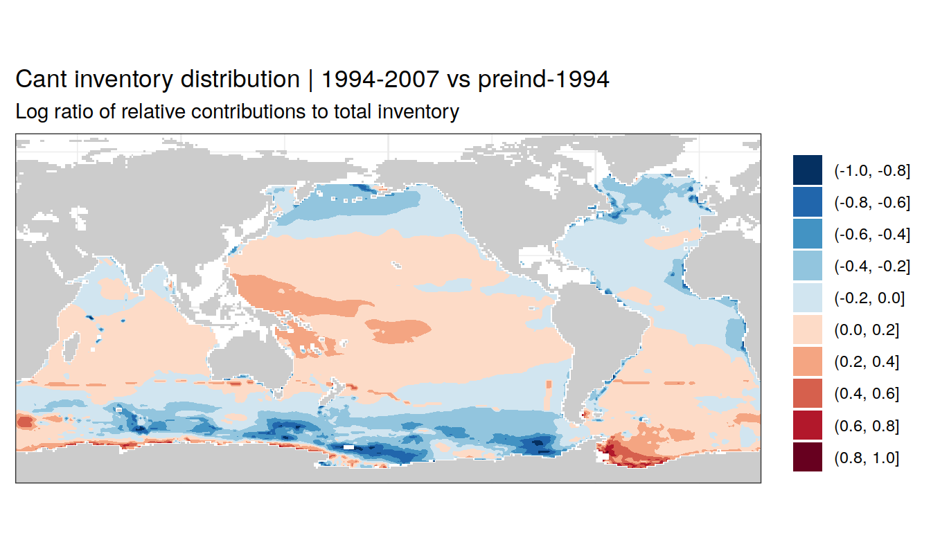 Global Cant inventories were estimated in Pg-C. Please note that here we only added positive Cant values in the upper m and do not apply additional corrections for areas not covered.