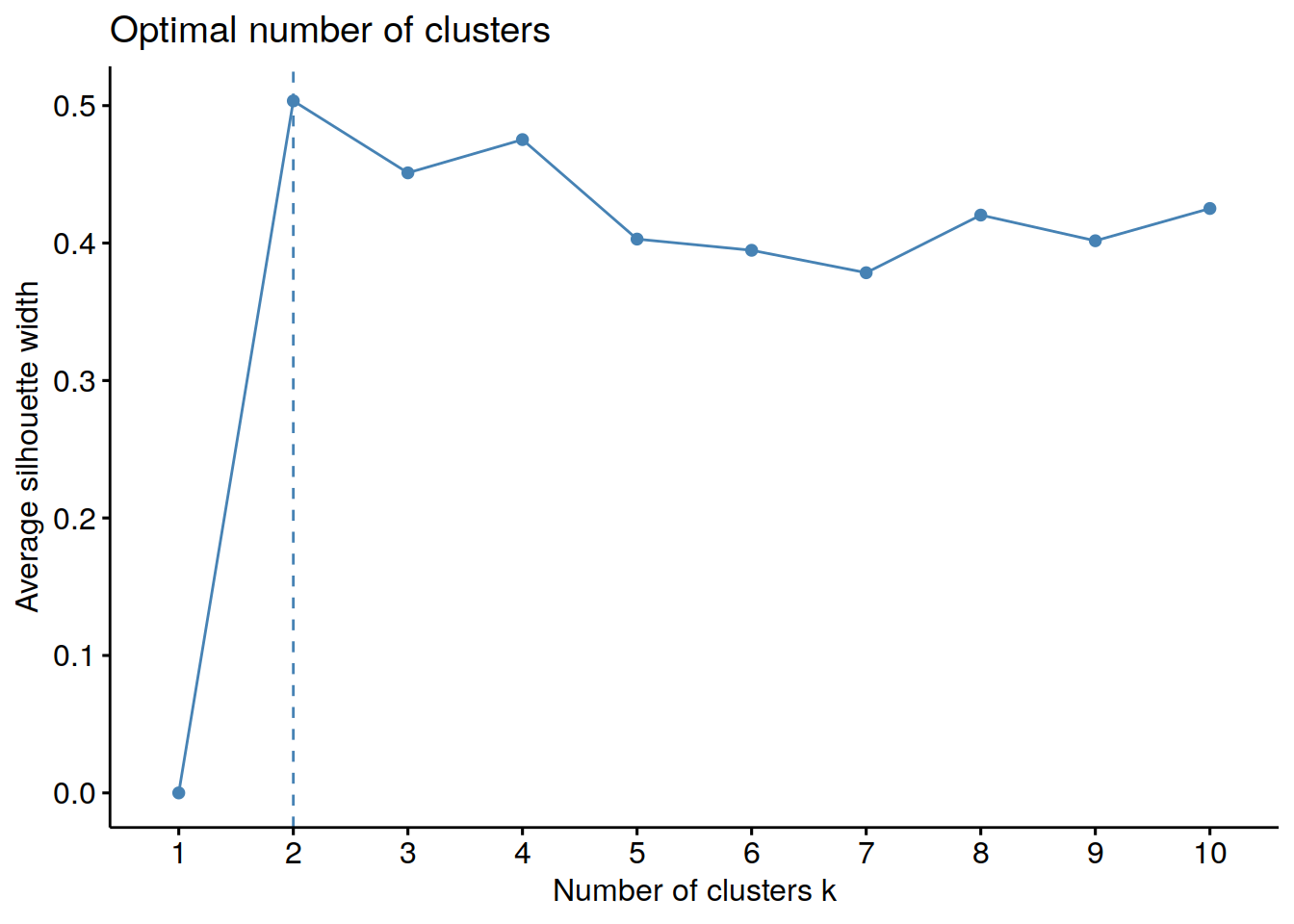 #         max.nc = 10, method = "kmeans")