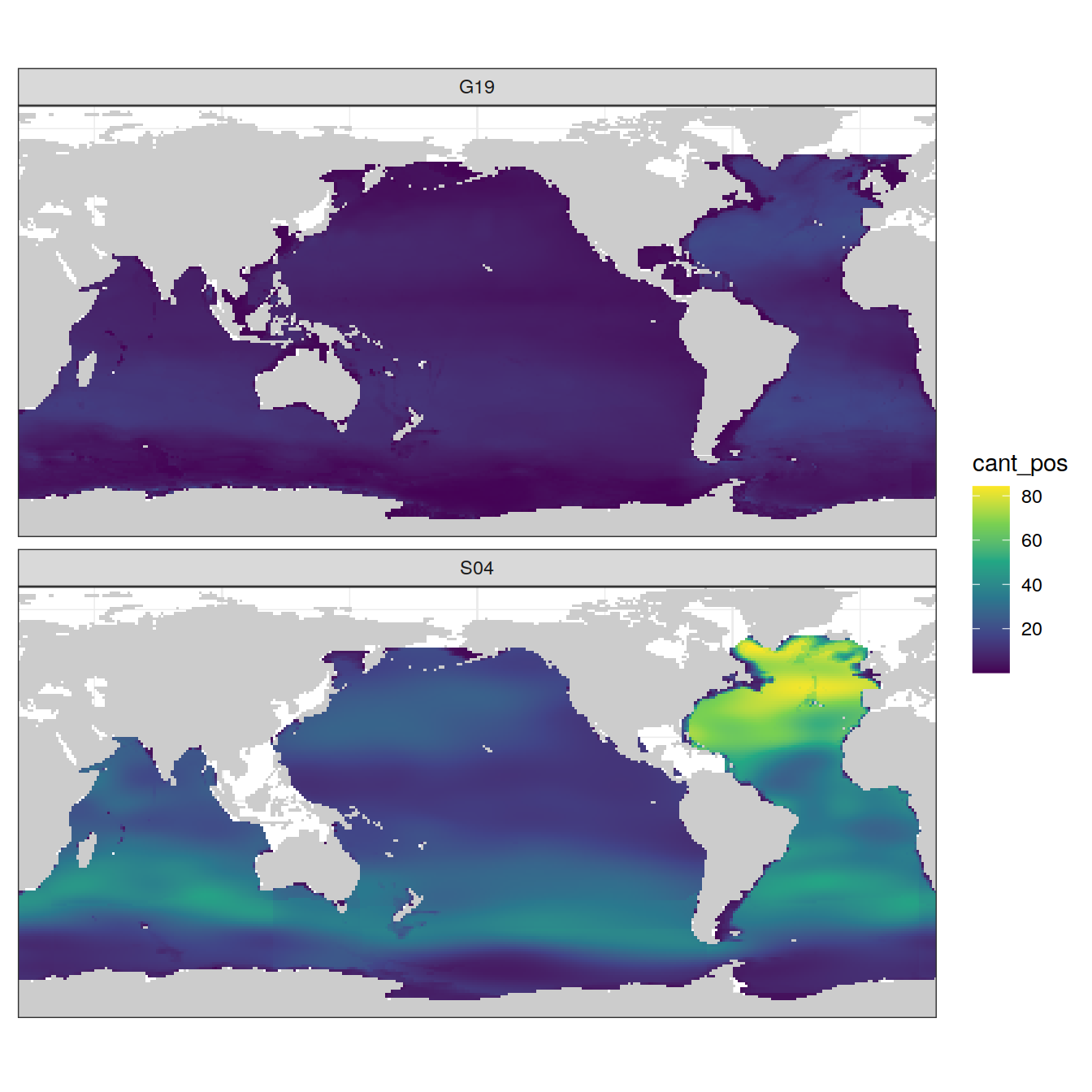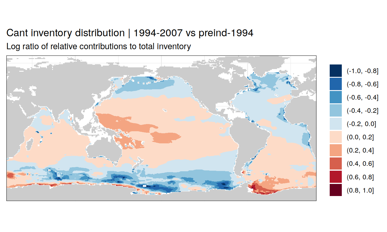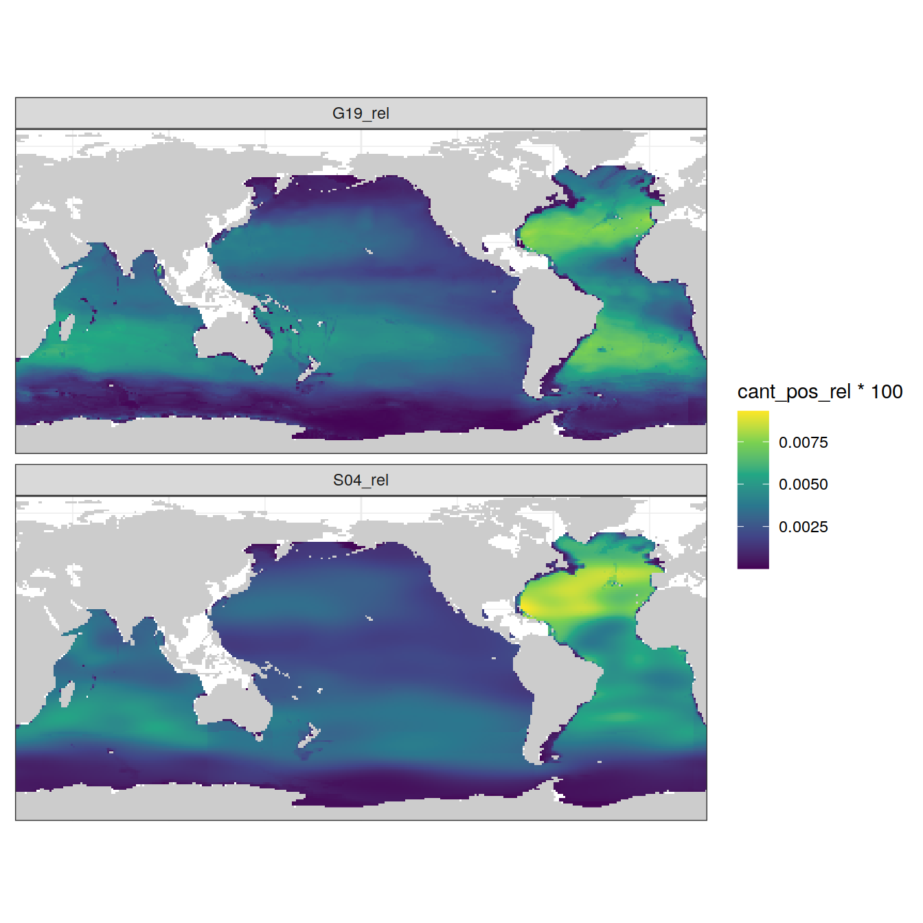 Global Cant inventories were estimated in Pg-C. Please note that here we only added positive Cant values in the upper m and do not apply additional corrections for areas not covered.