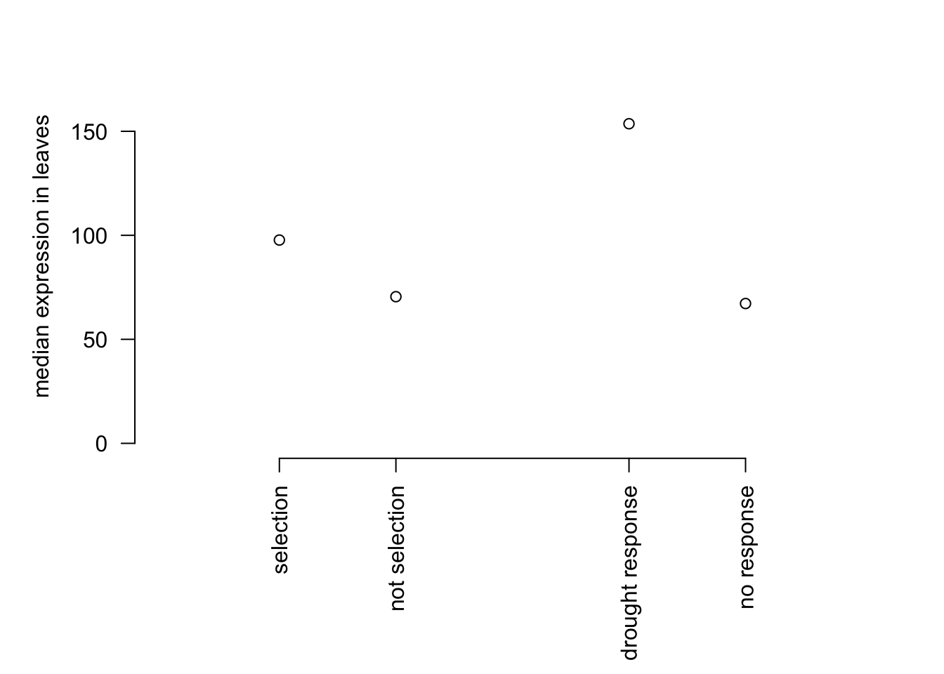 axis(1, at=c(1,2,4,5), lab = c('selection','not selection','cold response','no response'), las=2)