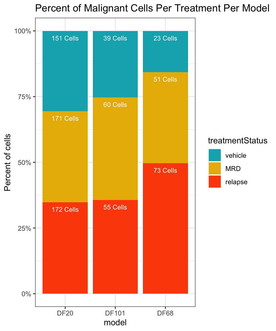 labs(title = "Percent of Malignant Cells Per Treatment Per Model") +