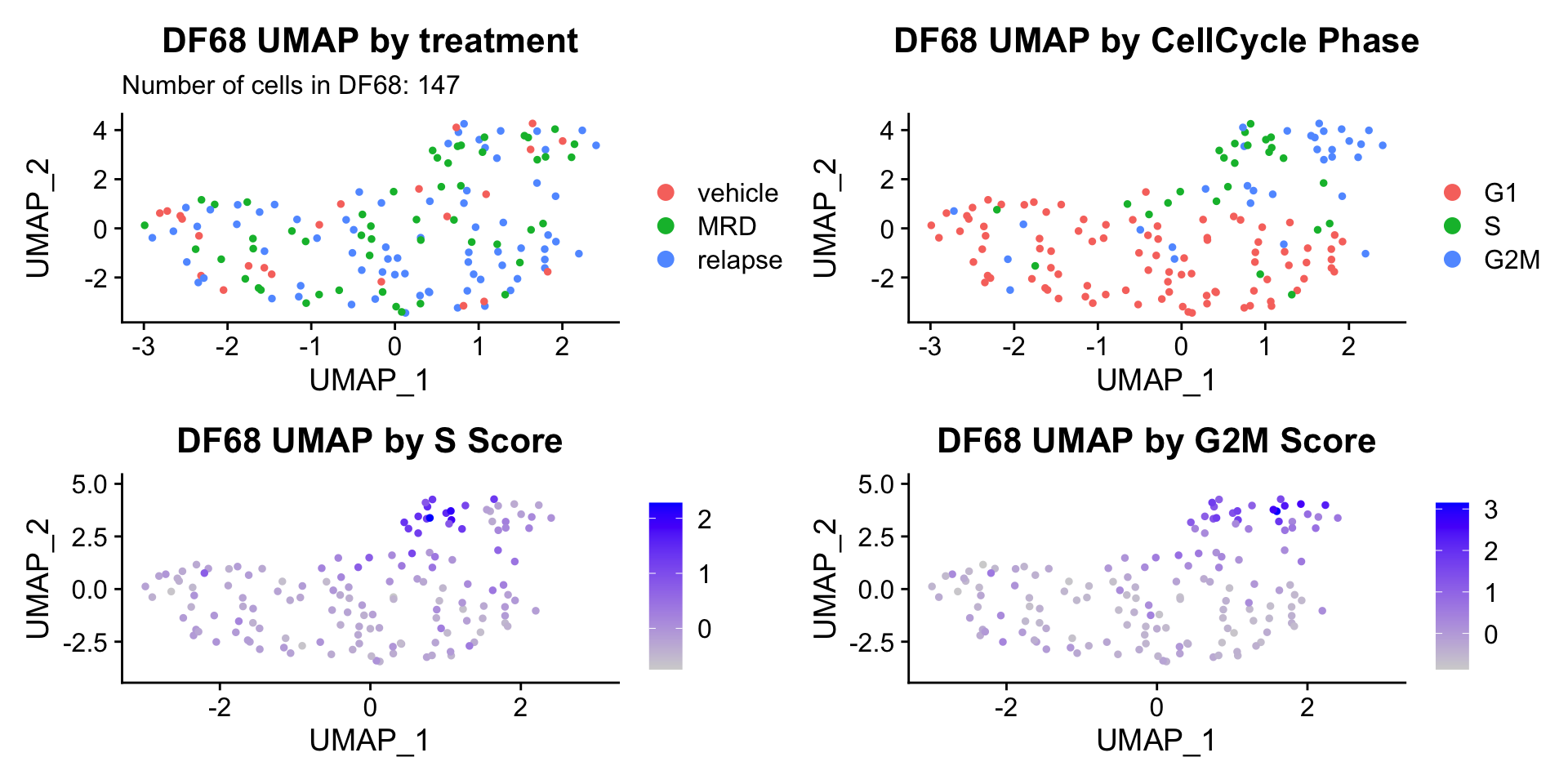 byscore[[2]] <- byscore[[2]] + labs(title = glue("{name} UMAP by G2M Score"))