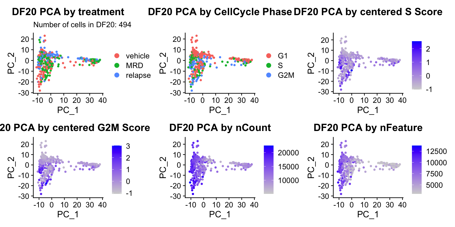 DF20.pca.byt <- PCAPlot(PDX_DF20, group.by = "treatment.status") + labs(title = "DF20 PCA by Treatment", subtitle = paste("Number of Cells:", nrow(PDX_DF20@meta.data)))