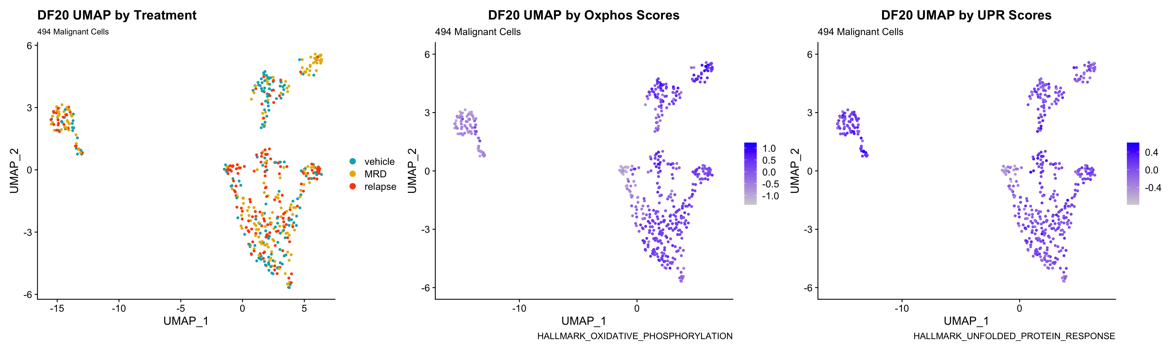 labs(title = glue("{name} UMAP by treatment"), subtitle = glue("{numCells} Malignant Cells")) +