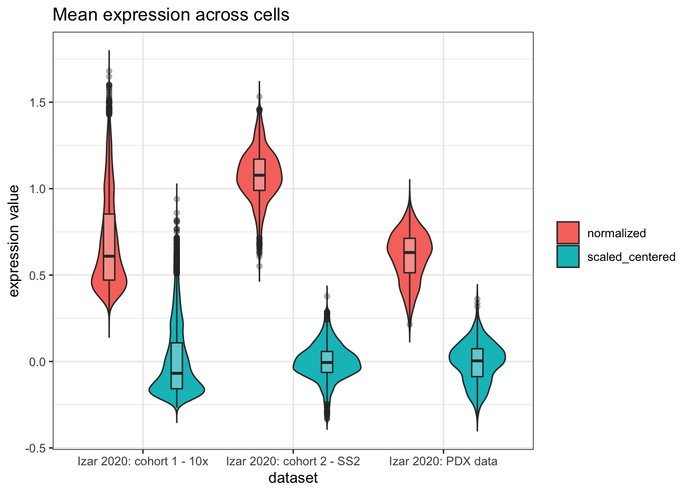 labs(title = "Mean expression across cells",