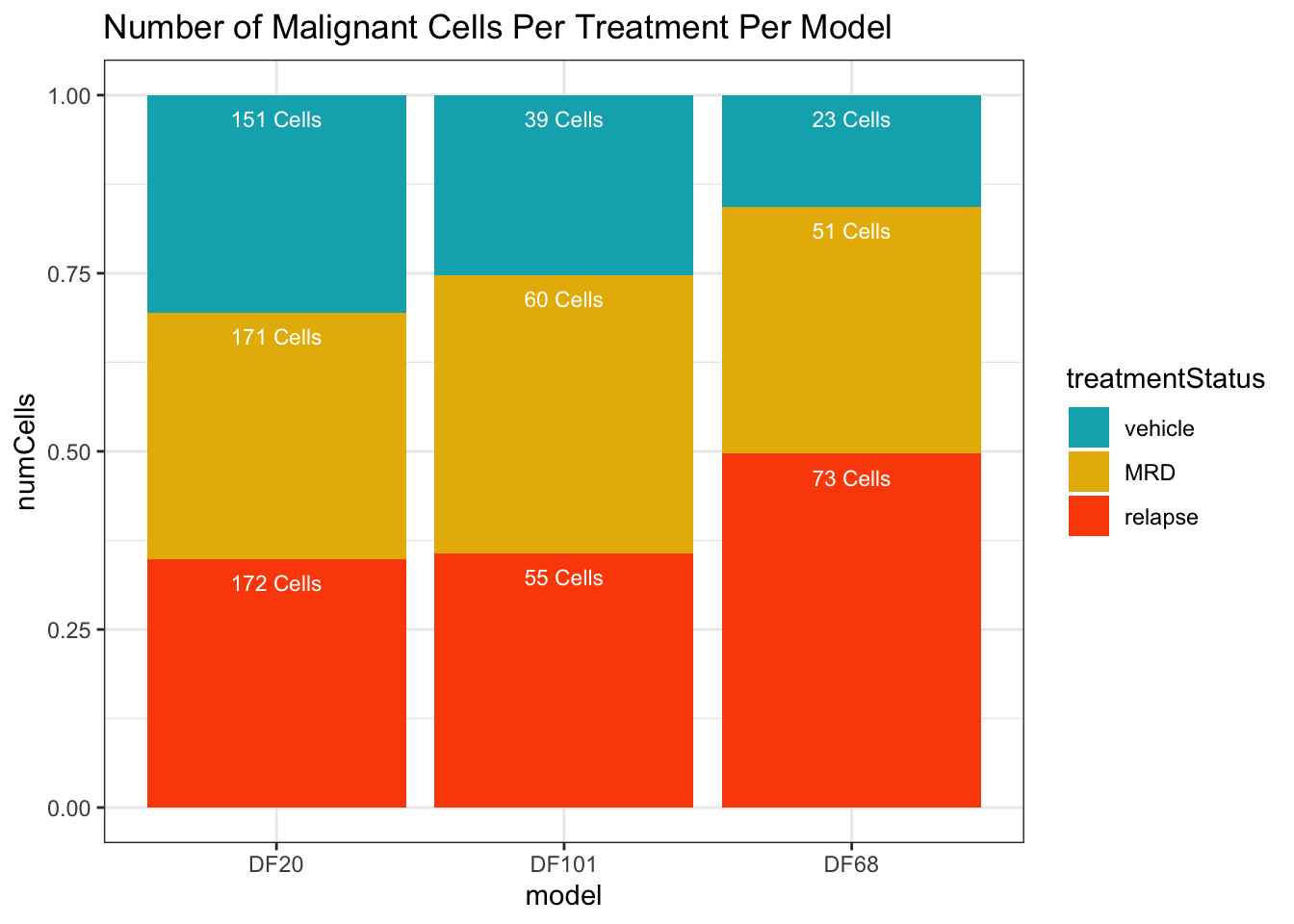 labs(title = "Number of Malignant Cells Per Treatment Per Model") +