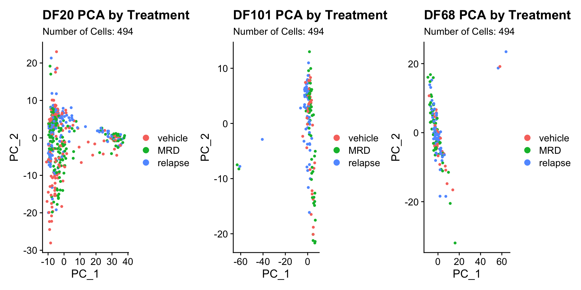 DF20.pca.byt <- PCAPlot(PDX_DF20, group.by = "treatment.status") + labs(title = "DF20 PCA by Treatment", subtitle = paste("Number of Cells:", nrow(PDX_DF20@meta.data)))