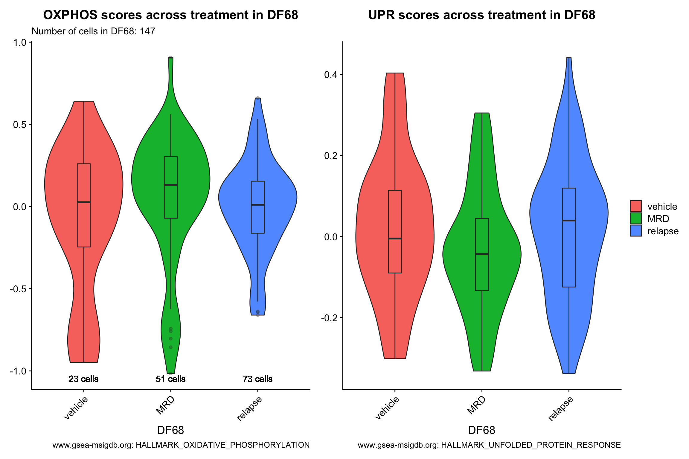 p[[2]] <- p[[2]] + labs(title = glue("UPR scores across treatment in {obj}"), x = obj, caption = "www.gsea-msigdb.org: HALLMARK_UNFOLDED_PROTEIN_RESPONSE") +