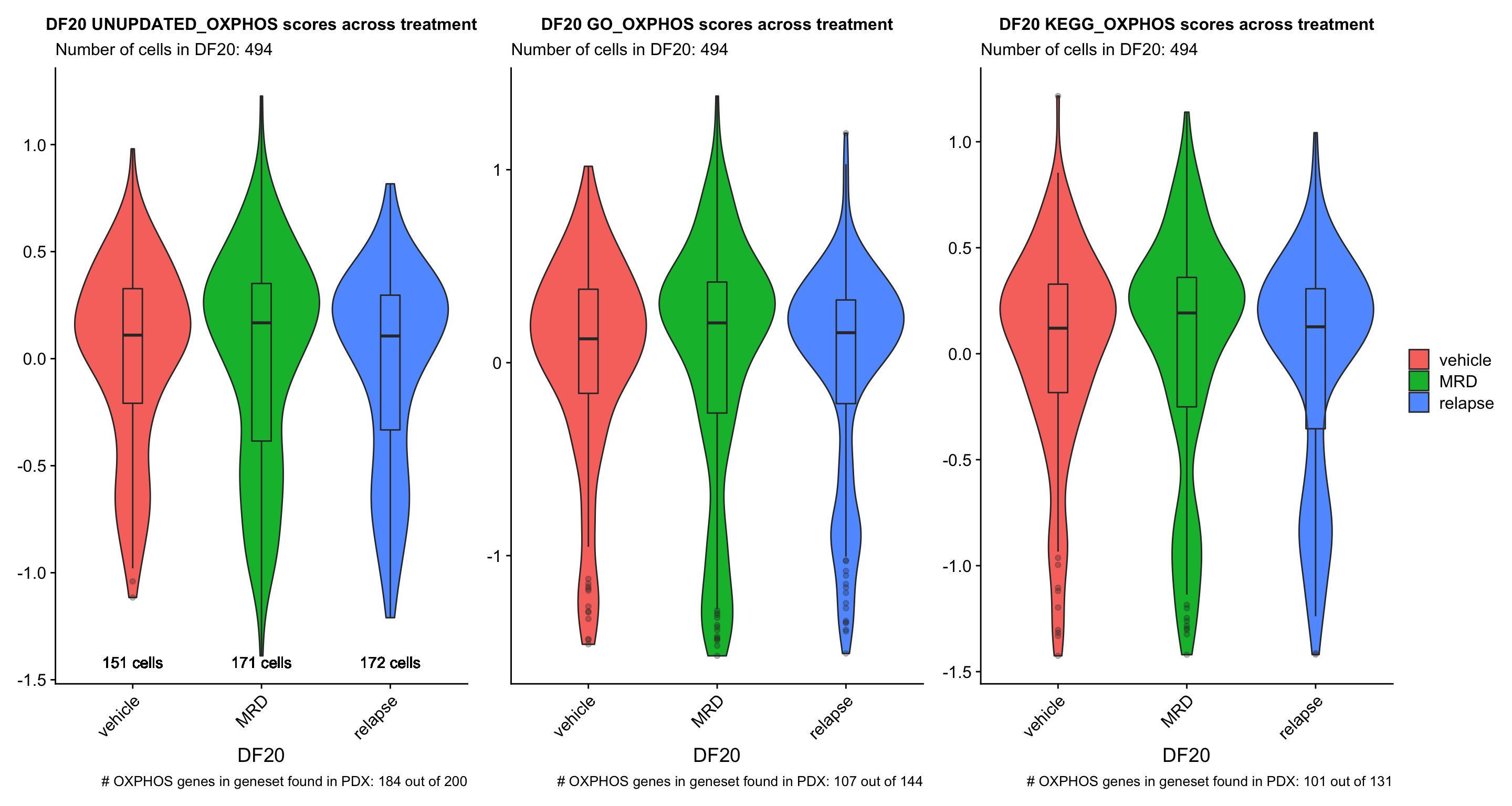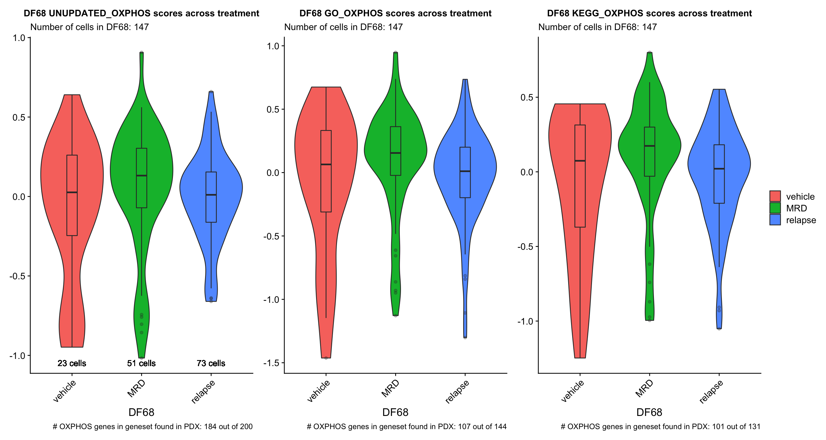 geom_text(label = paste(sum(PDXs[[i]]$treatment.status == "vehicle"), "cells"), x = "vehicle", y = min(PDXs[[i]]$UNUPDATED.OXPHOS37.centered) -0.03) +