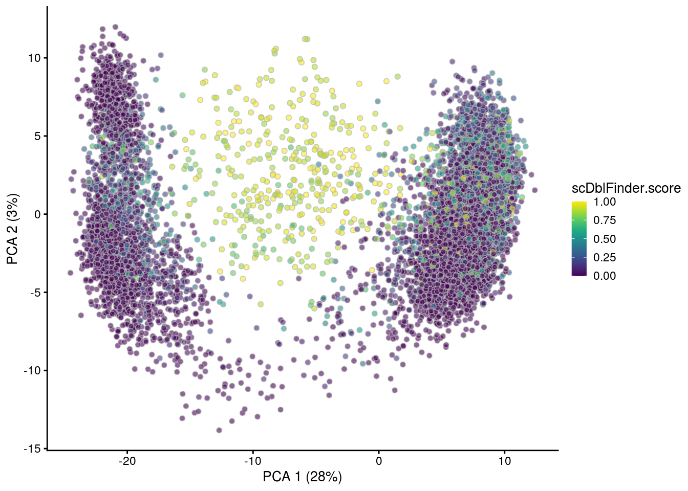 print(plotPCA(subs, colour_by = "scDblFinder.score"))