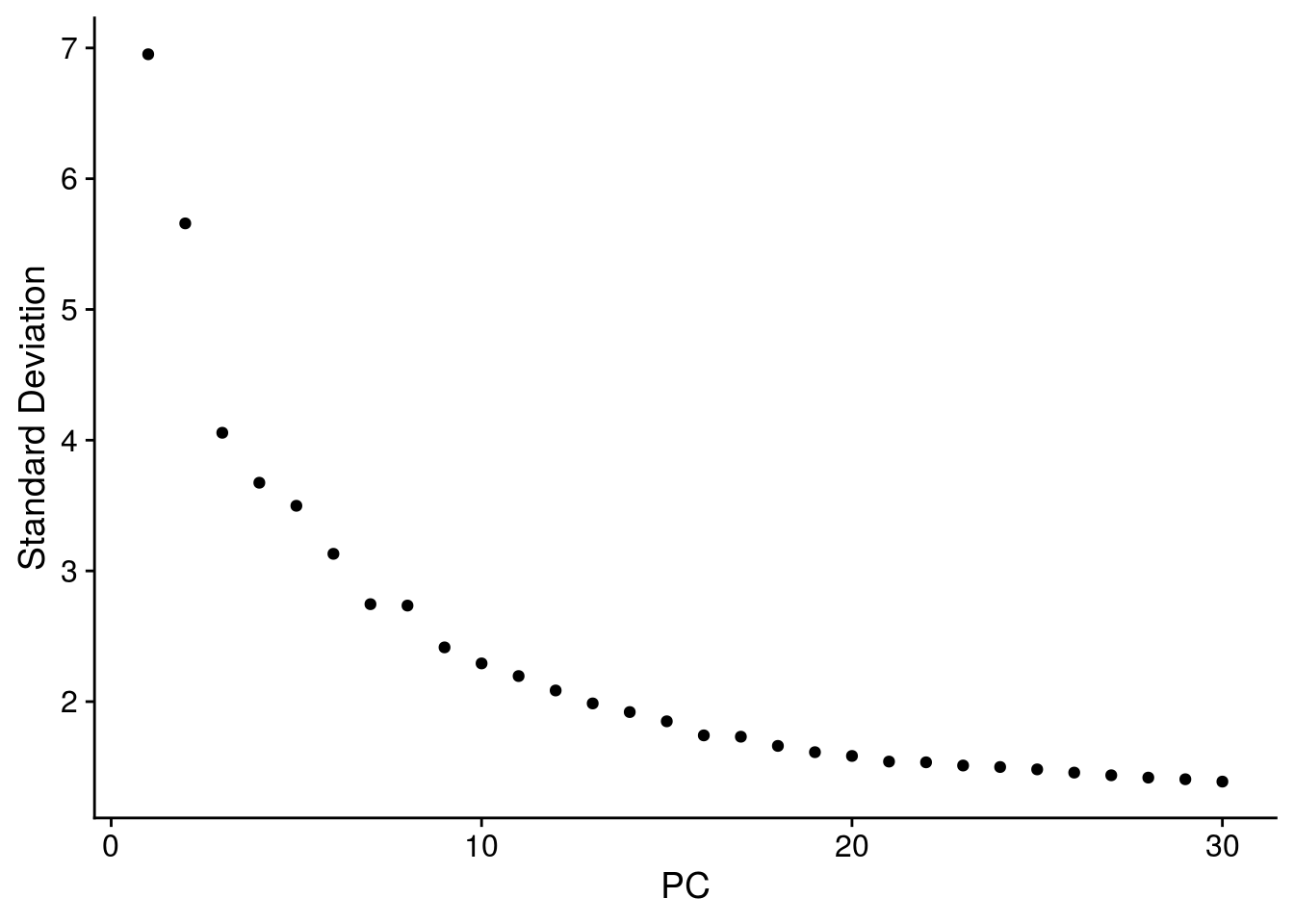 # elbow plot with the ranking of PCs based on the % of variance explained