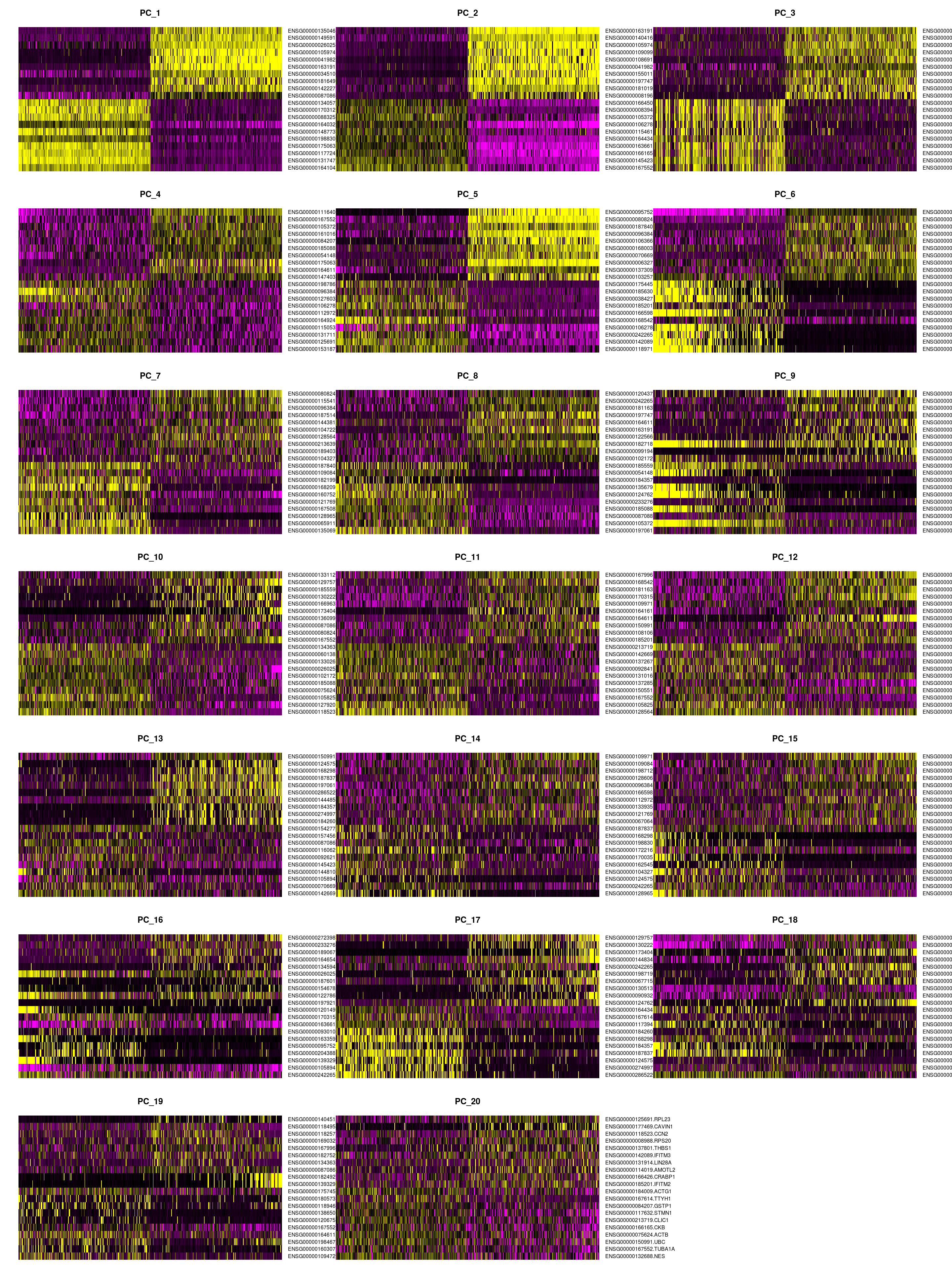 ## heatmaps of the top 20 PCs and the 500 most extreme cells for each component