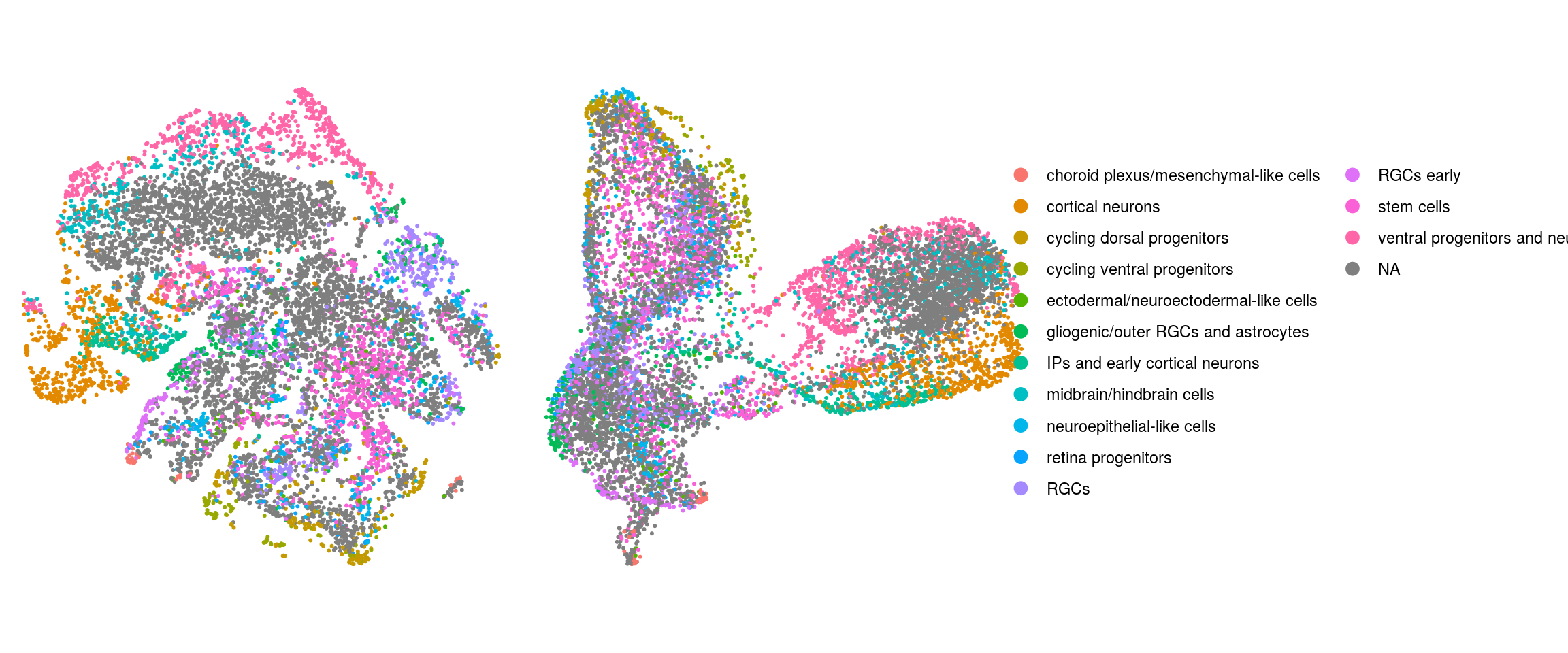"IPs and early cortical neurons", "midbrain/hindbrain cells",