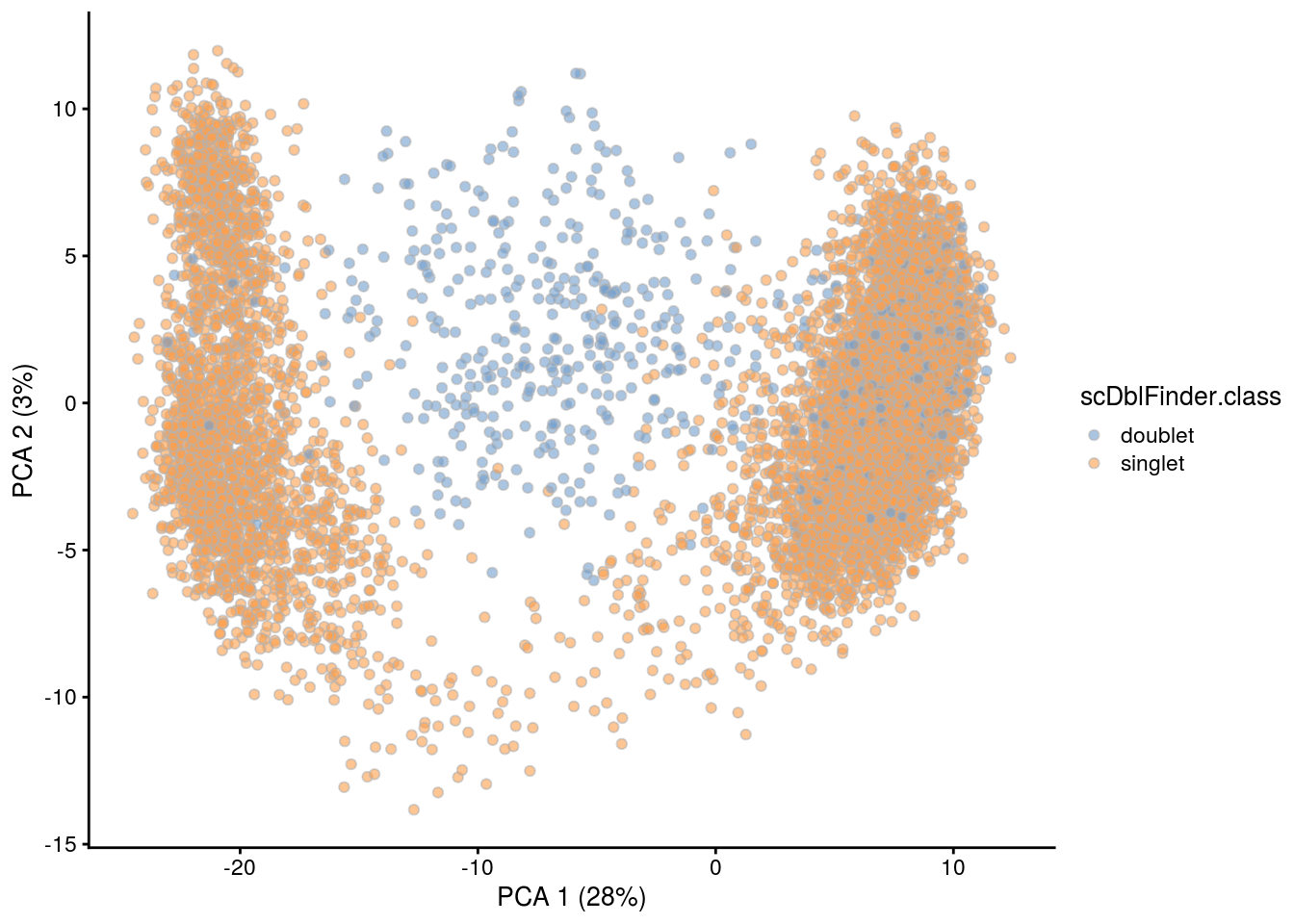 print(plotPCA(subs, colour_by = "scDblFinder.class"))