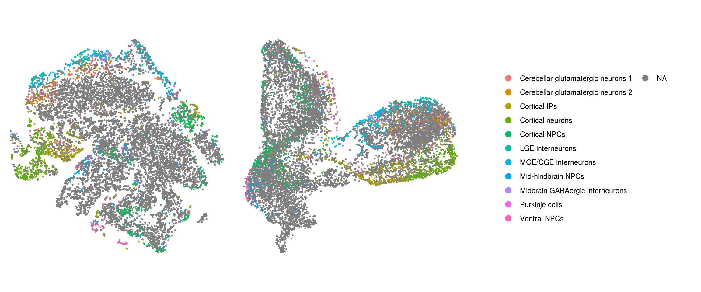 "IPs and early cortical neurons", "midbrain/hindbrain cells",