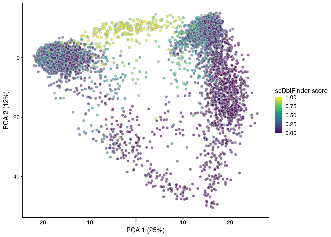 print(plotPCA(subs, colour_by = "scDblFinder.score"))