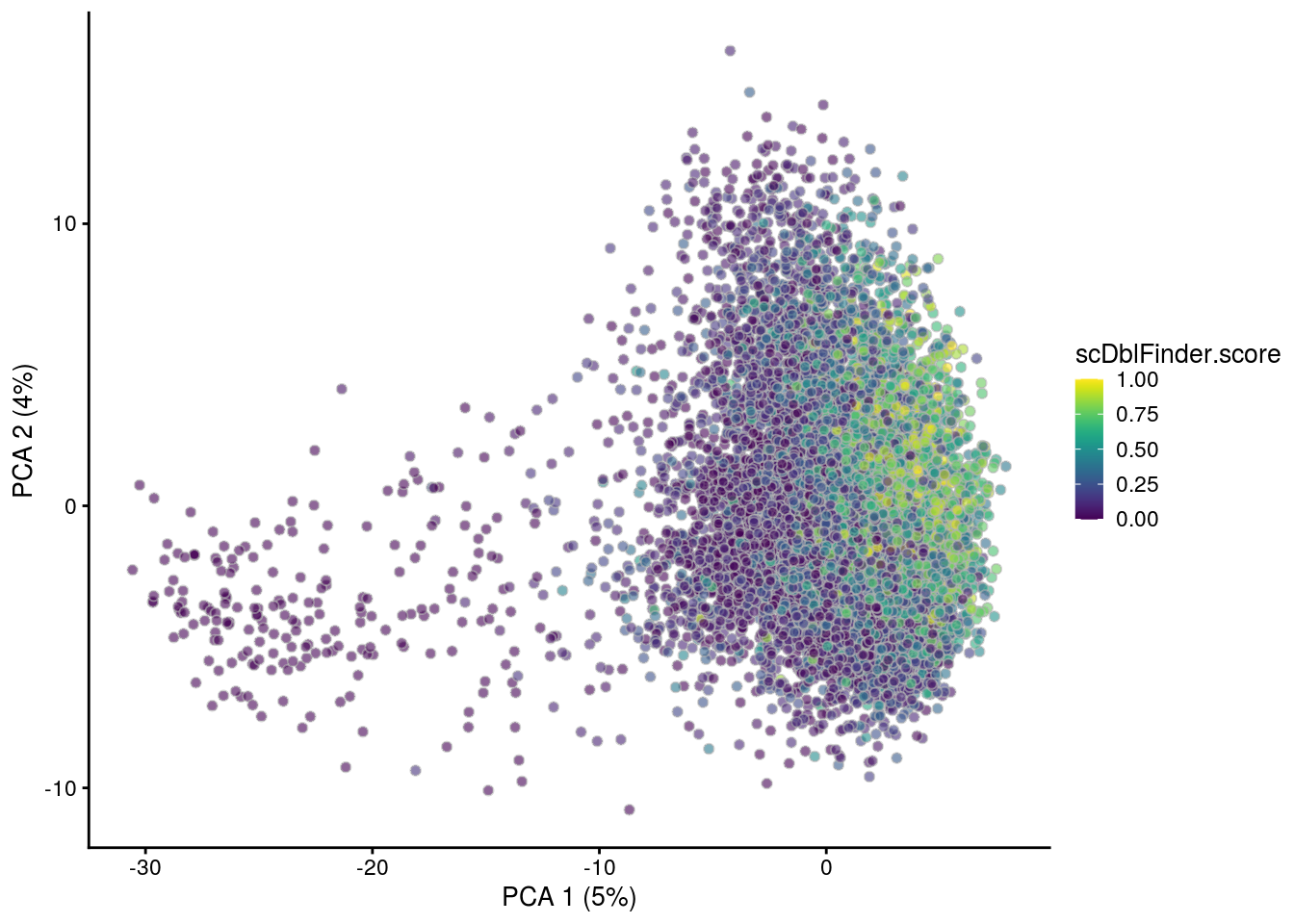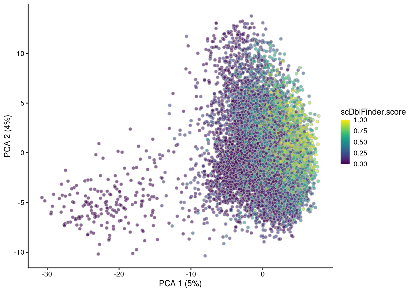 print(plotPCA(subs, colour_by = "scDblFinder.score"))