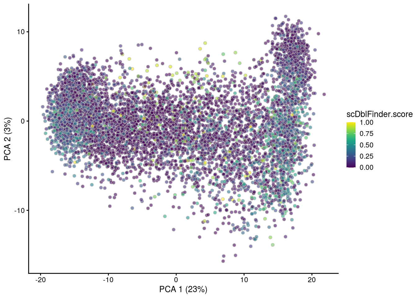 print(plotPCA(subs, colour_by = "scDblFinder.score"))