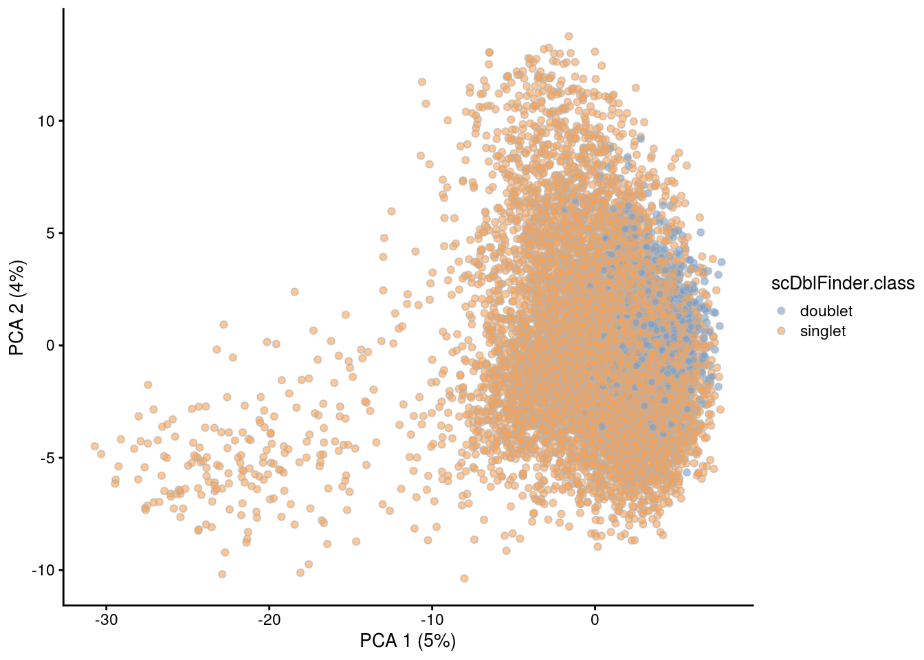 print(plotPCA(subs, colour_by = "scDblFinder.class"))