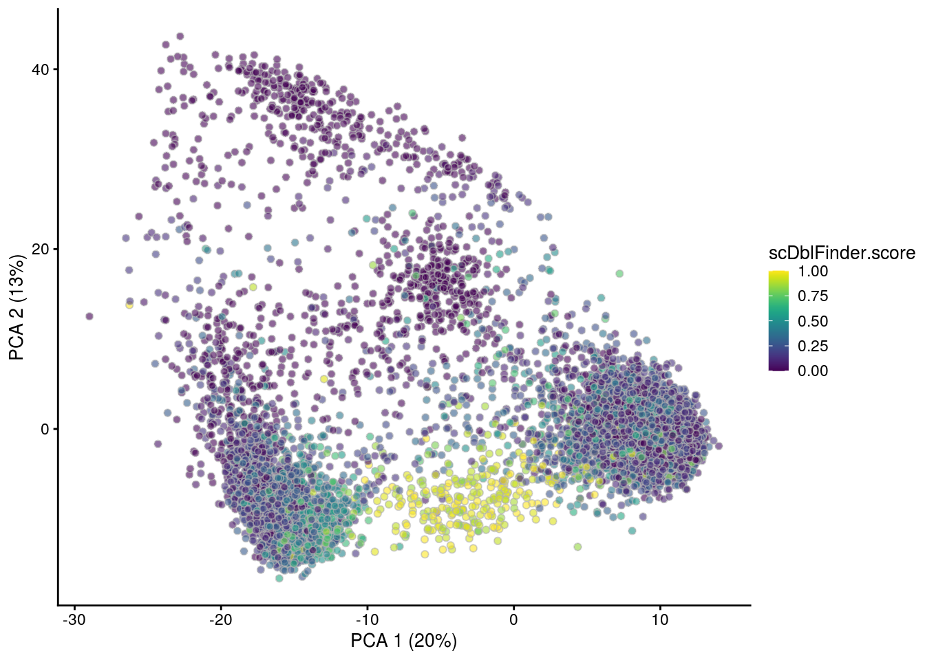 print(plotPCA(subs, colour_by = "scDblFinder.score"))
