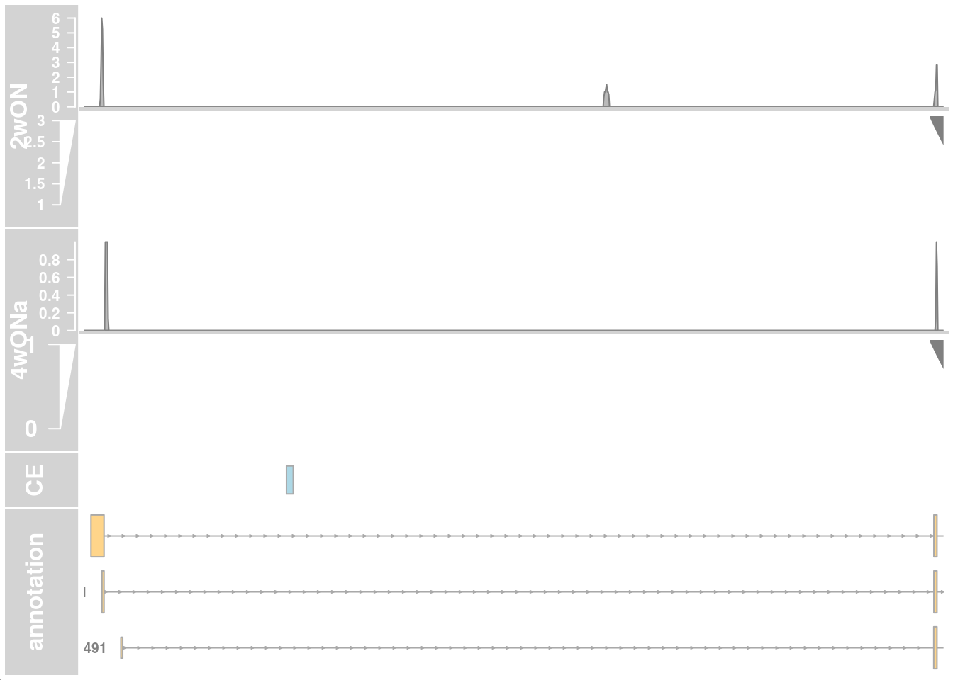 plotTracks(c(alTrack_2wON, alTrack_4wONa, ceTrack, gtftrack),