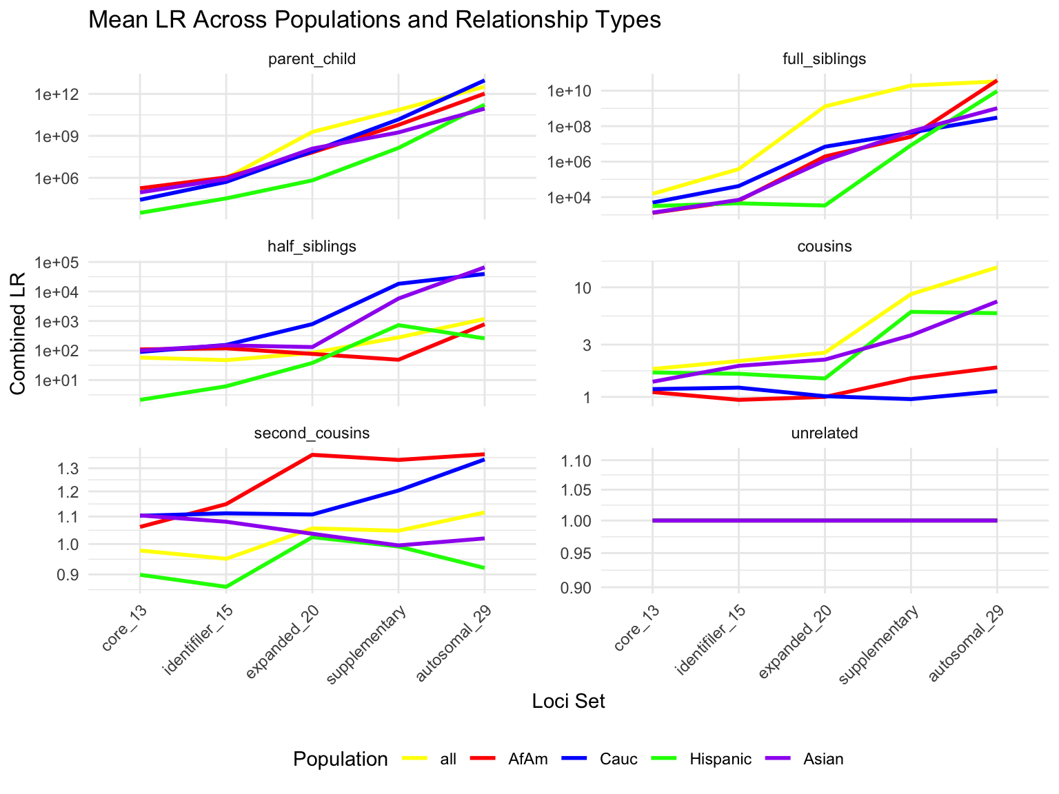 We will simulate pairs of individuals with known relationships (e.g., parent-child, siblings), including unrelated individuals, based on the specified parameters. We will then calculate the likelihood ratio for each pair of individuals based on the simulated genotypes and known relationships.