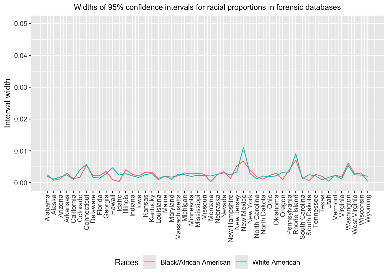 for the white proportion in Census, where \(c_{1-\alpha/2}\) is the \(1-\alpha/2\) quantile of the standard