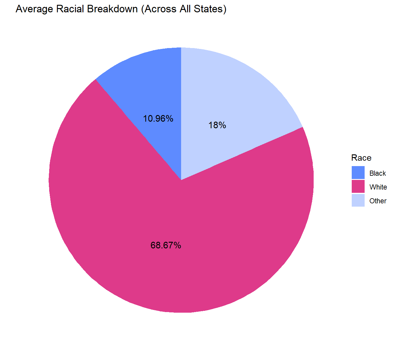 Below are some summary statistics of the racial demographics of each state’s total population.
